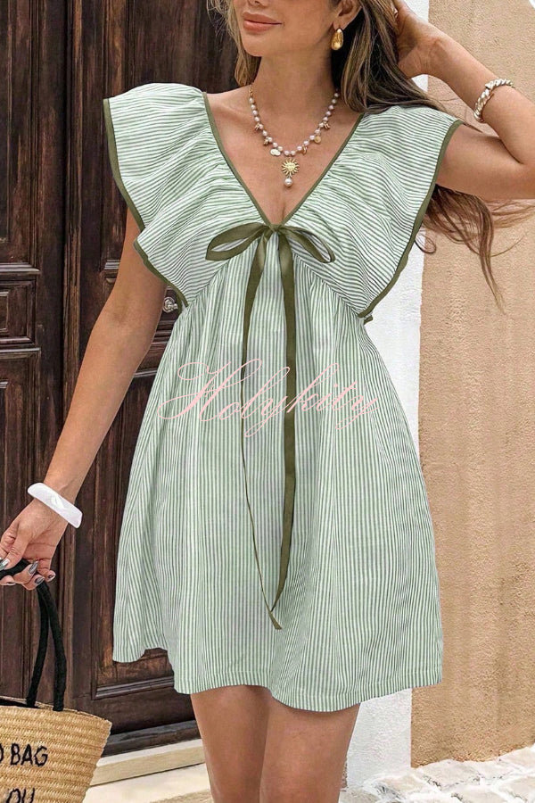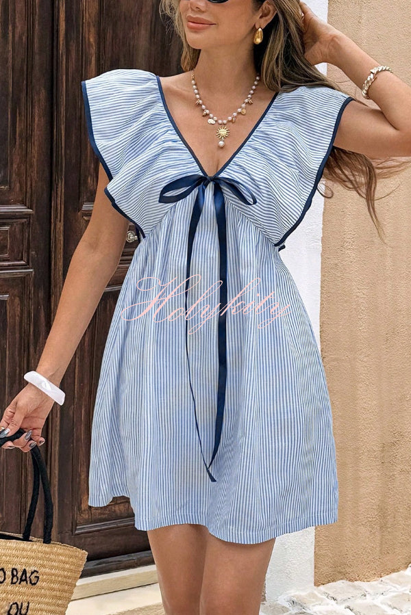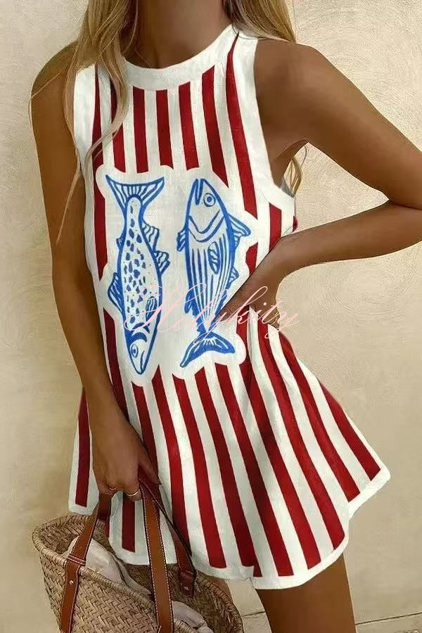 Lucia Linen Blend Ric Rac Trims Unique Print Cutout Pocketed Mini Dress