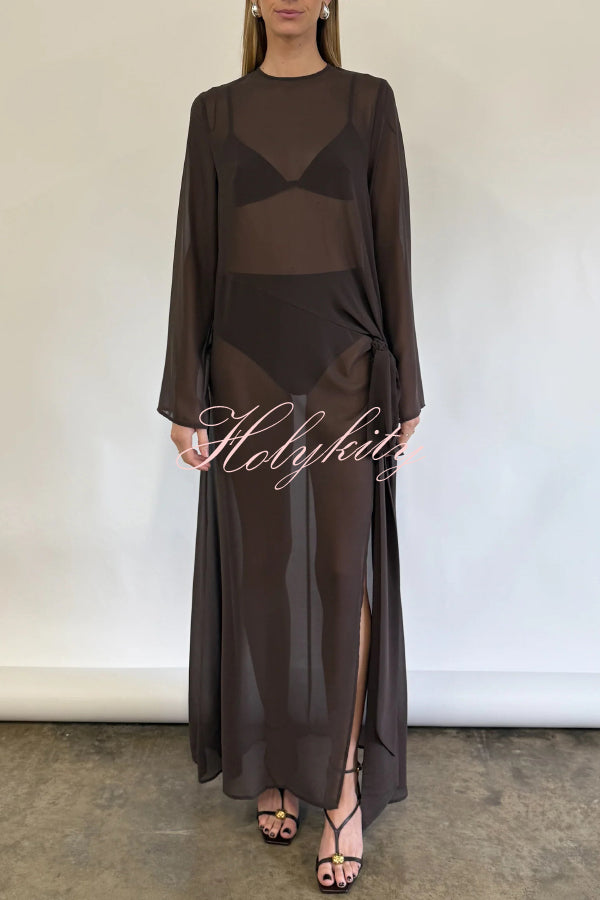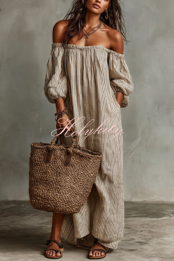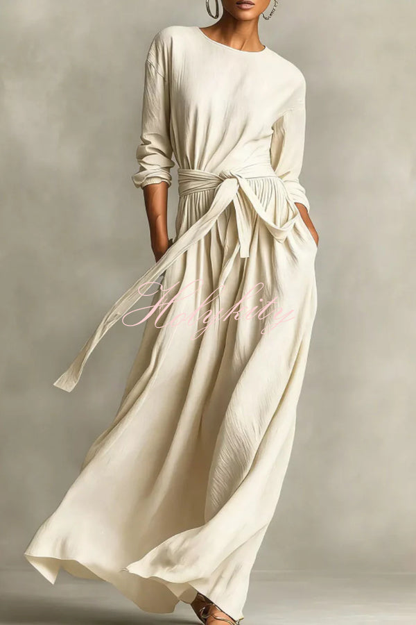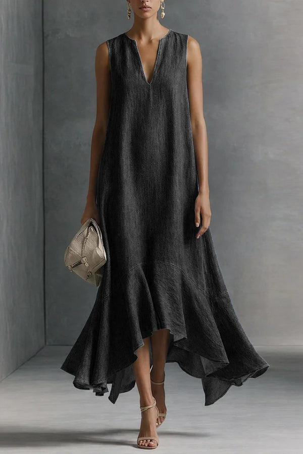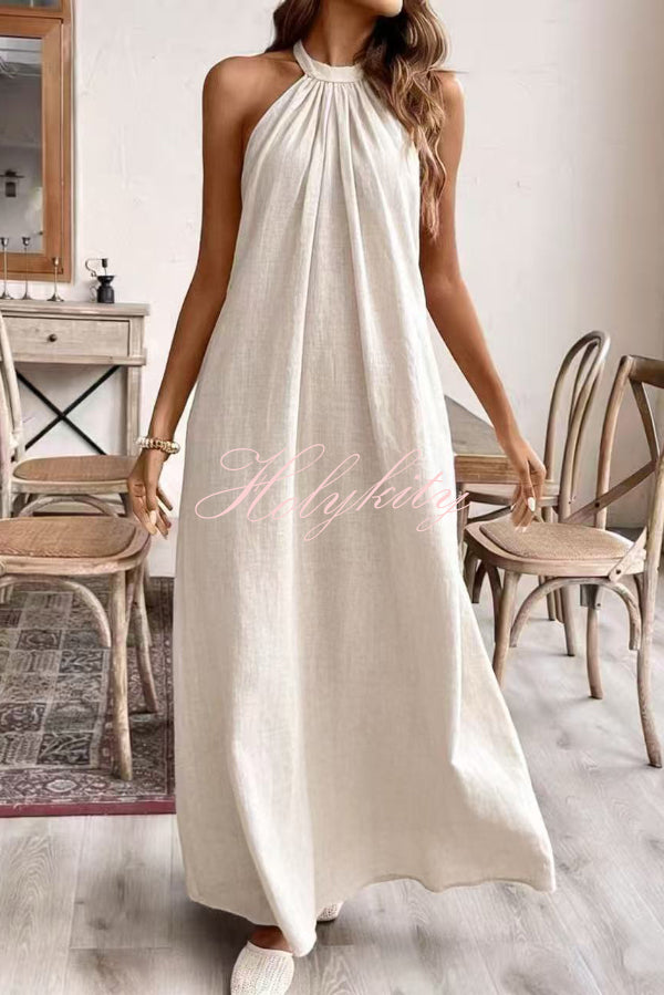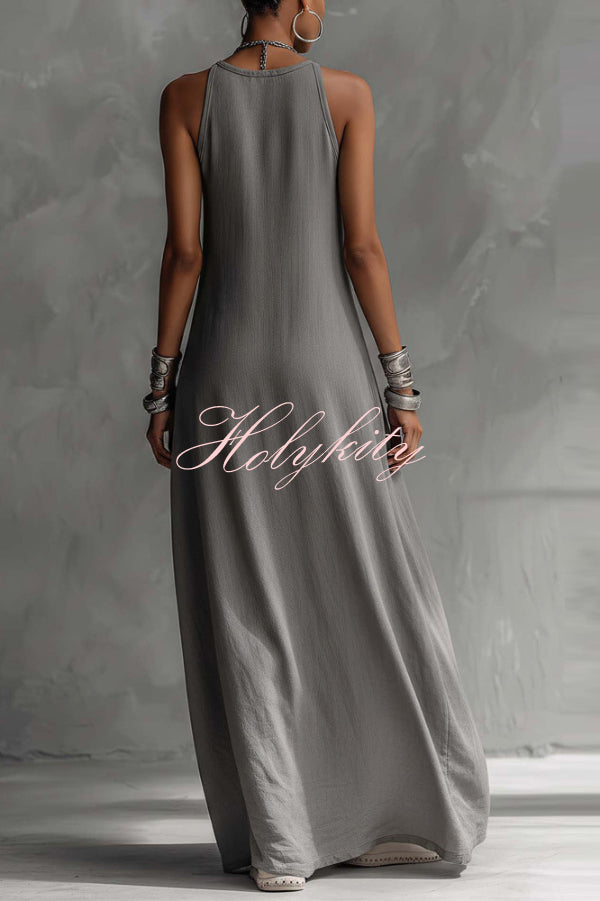 Modern and Sophisticated Linen Blend Draped Braids Cover Up Maxi Dress