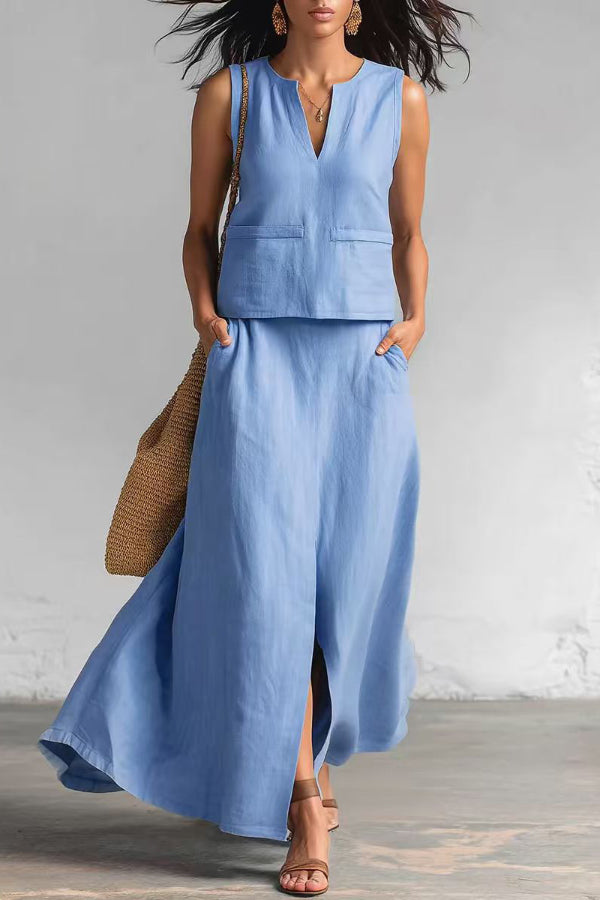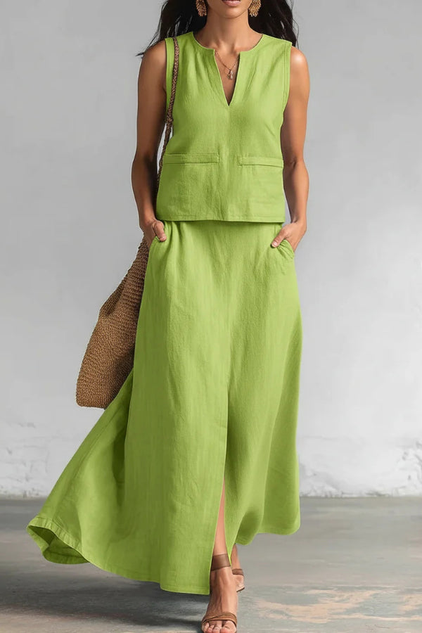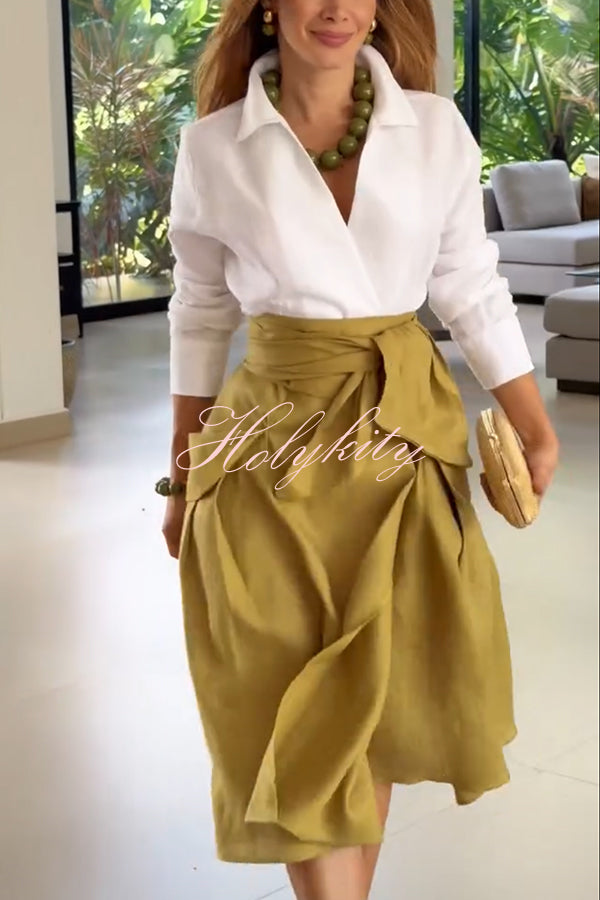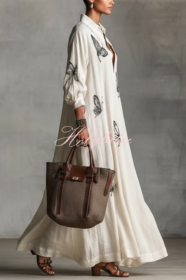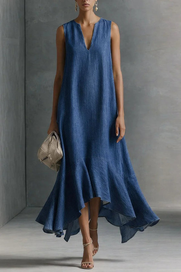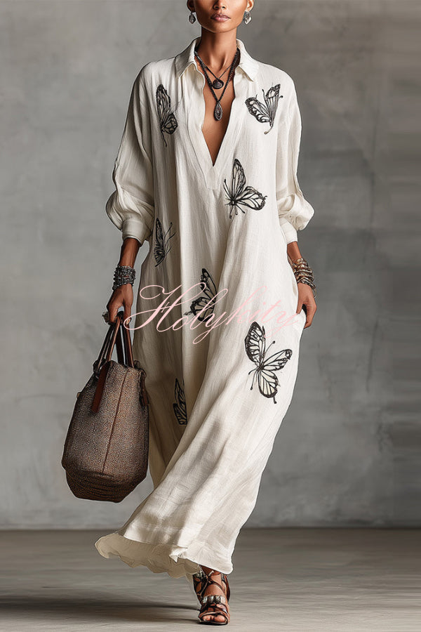 Modern and Sophisticated Linen Blend Draped Braids Cover Up Maxi Dress