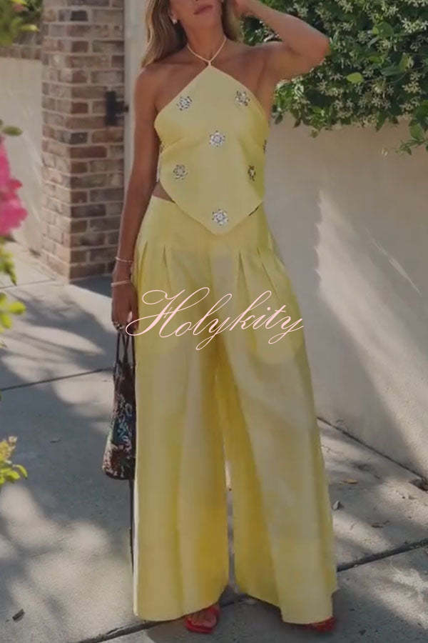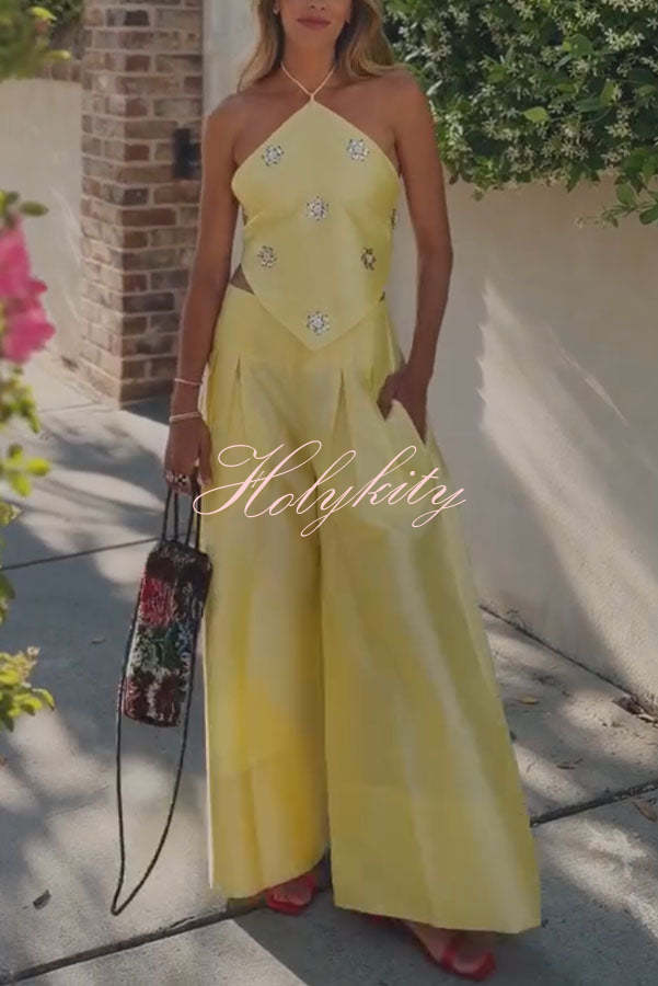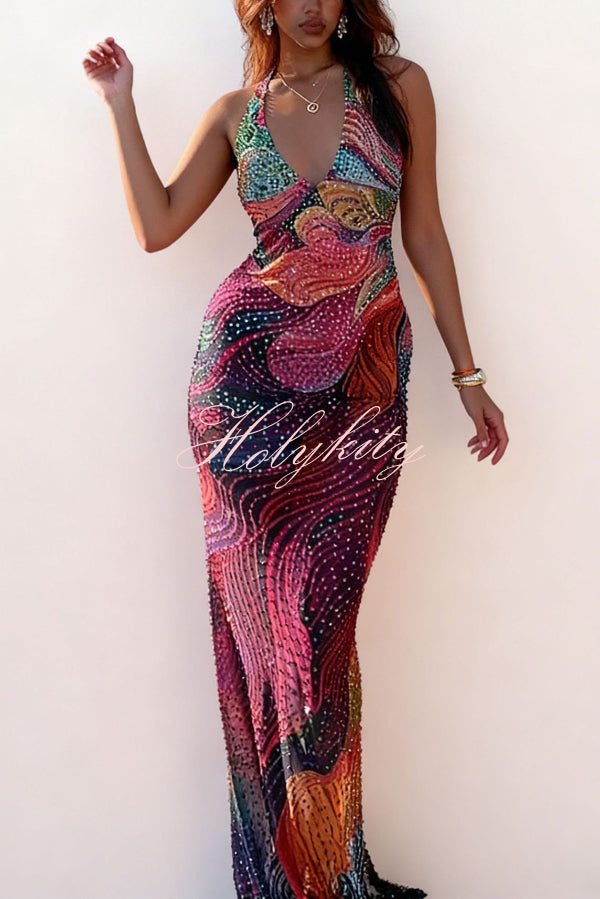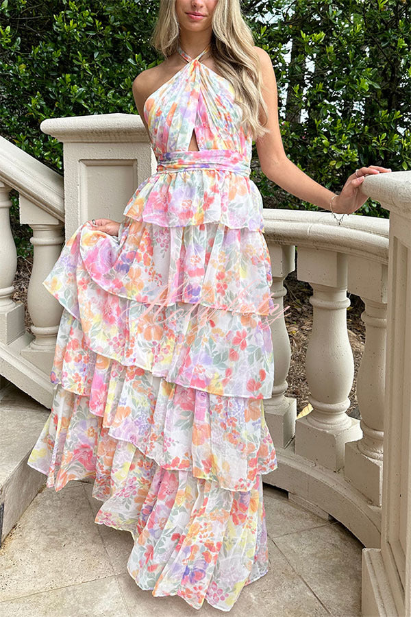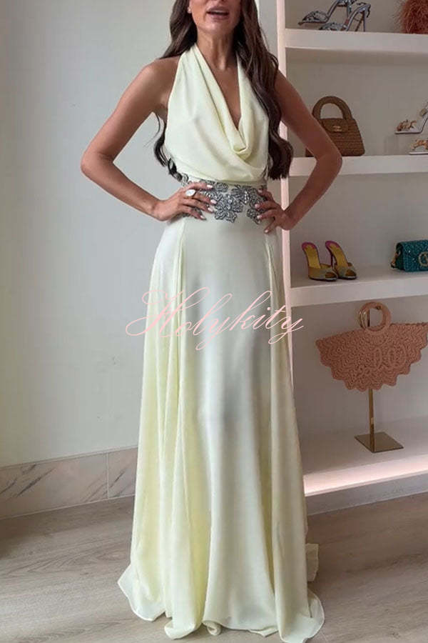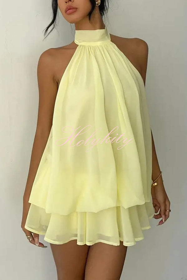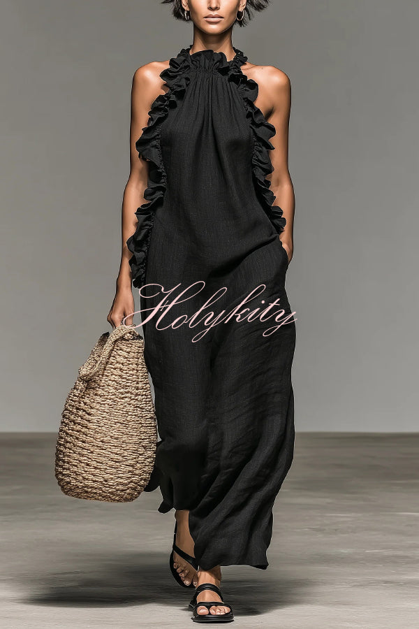Dream Ode Lily Pad Style Pleats and Ruffles Halter Gown Maxi Dress
