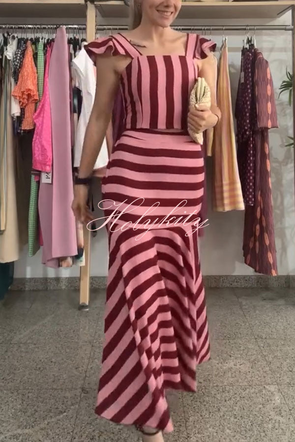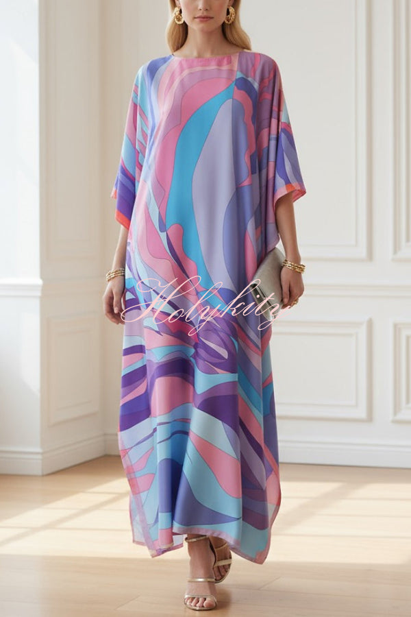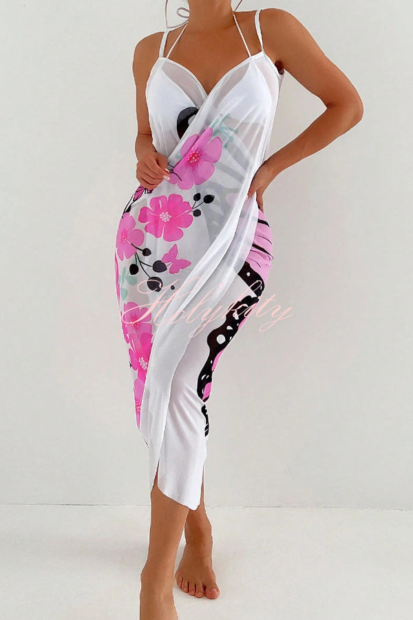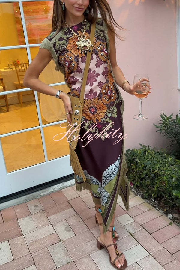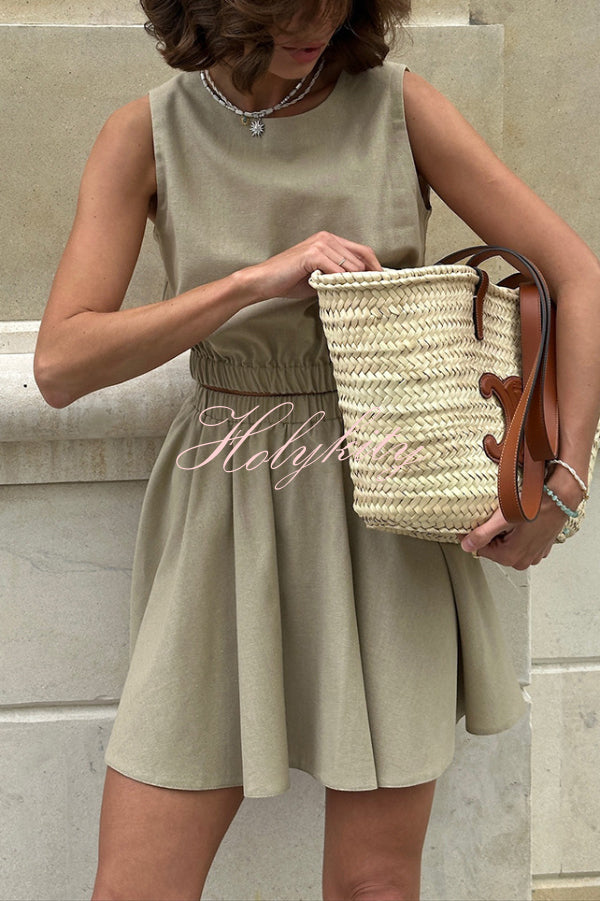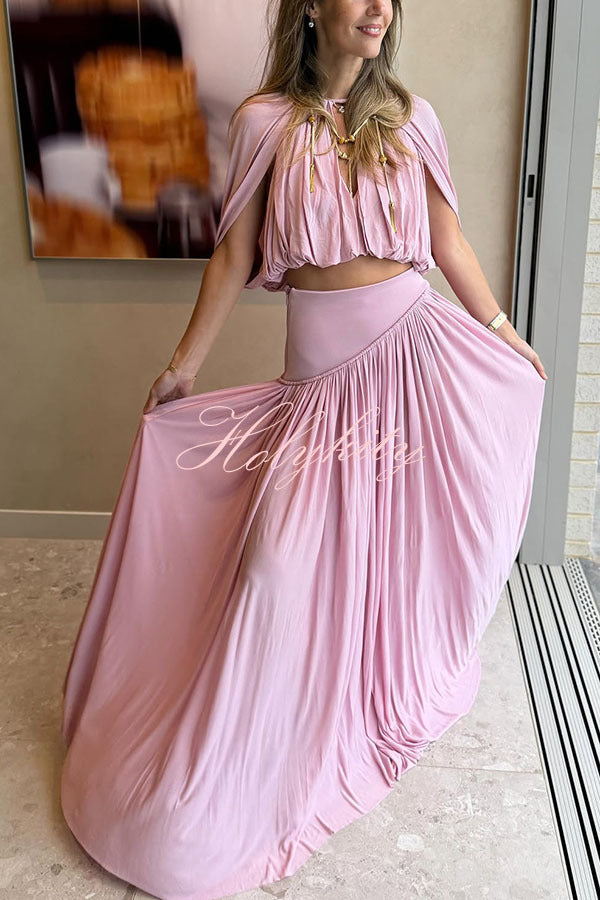 Summer Social Stain Pleated Cutout Waist Loose Midi Dress