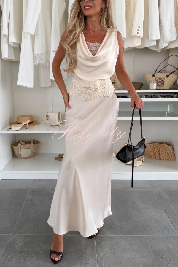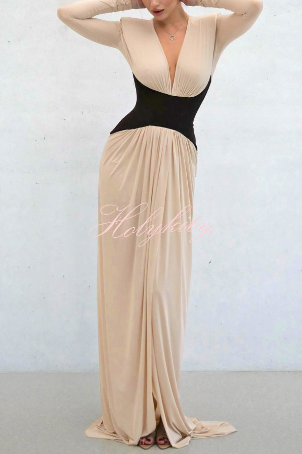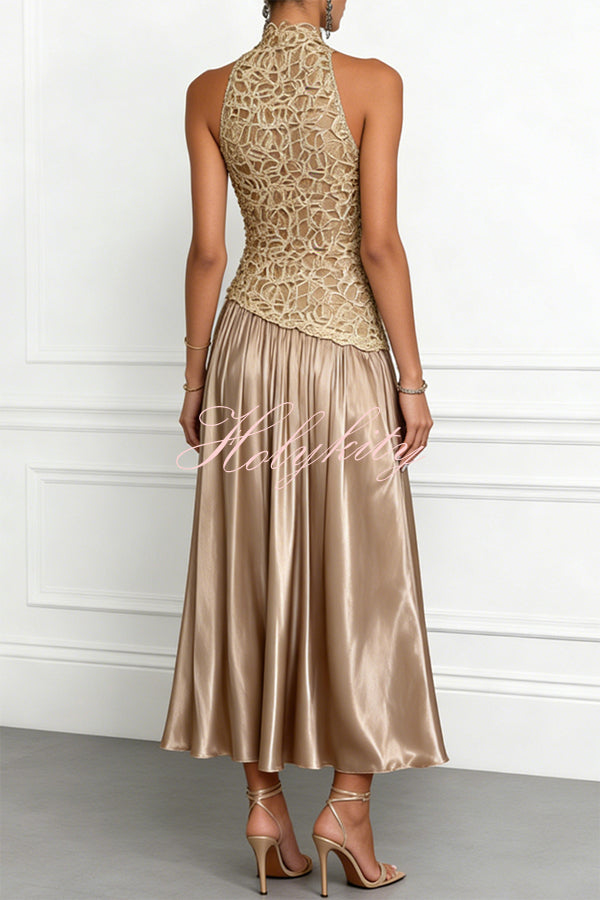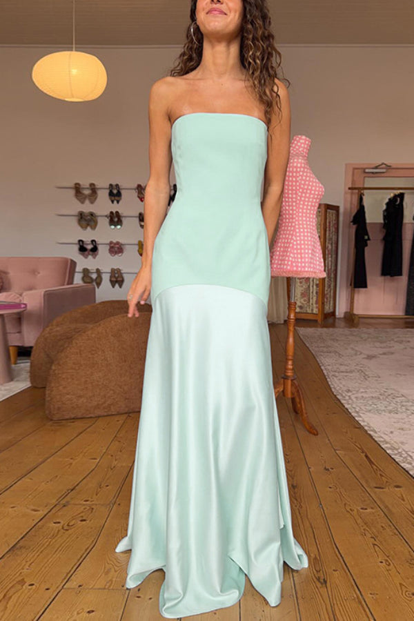 Timeless Elegance Satin Patchwork Strapless Flare Gown Maxi Dress