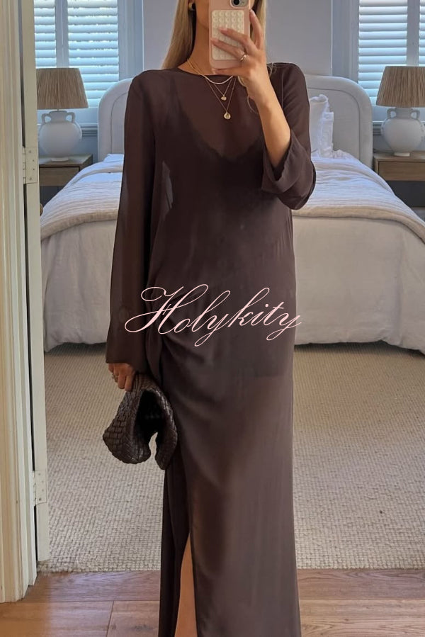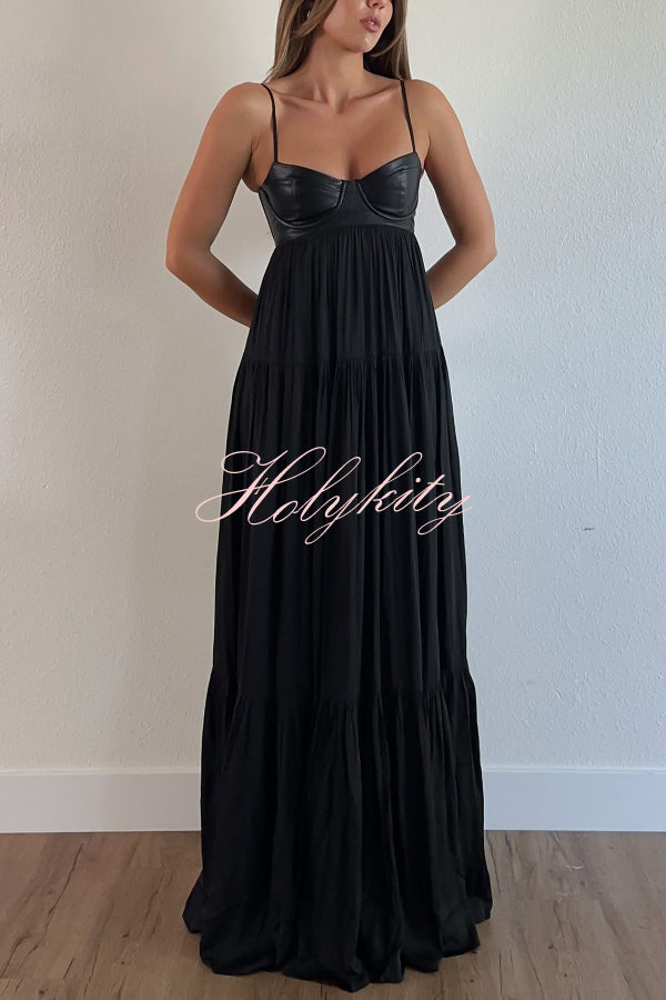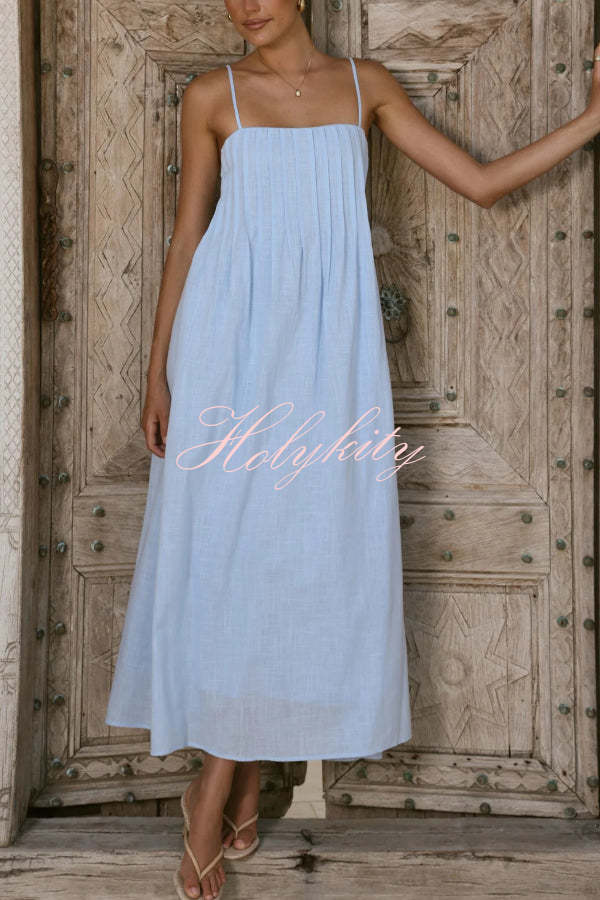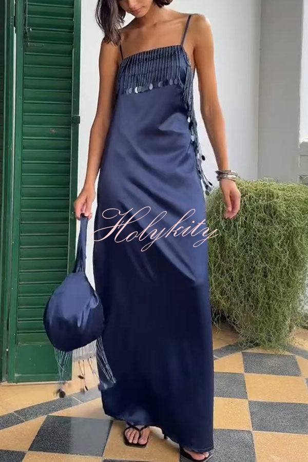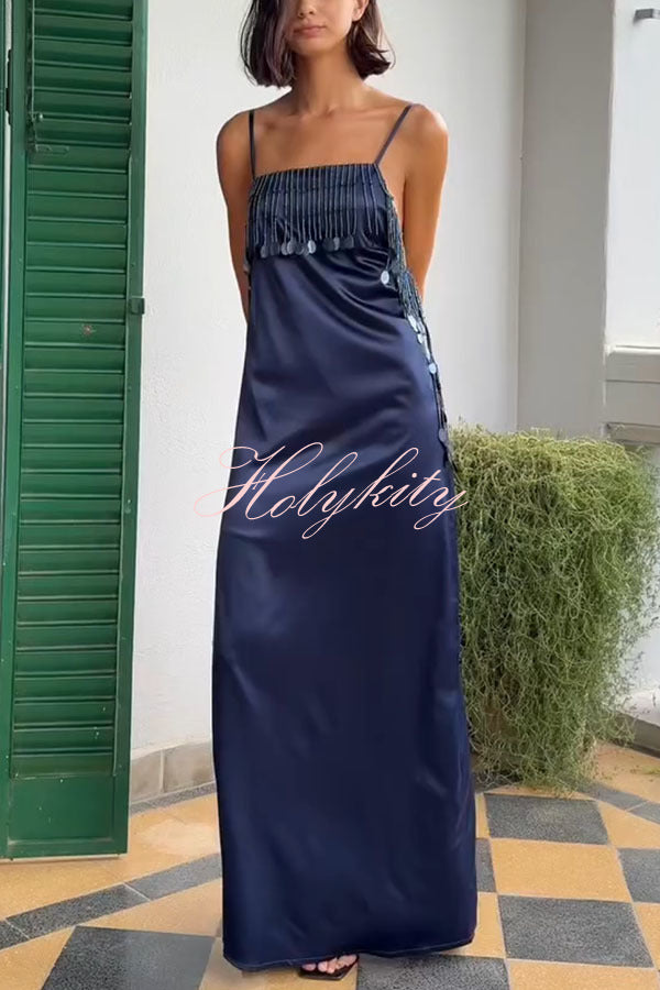 Soft and Elegant Metal Hollow Design Back Smocked A-line Slip Maxi Dress