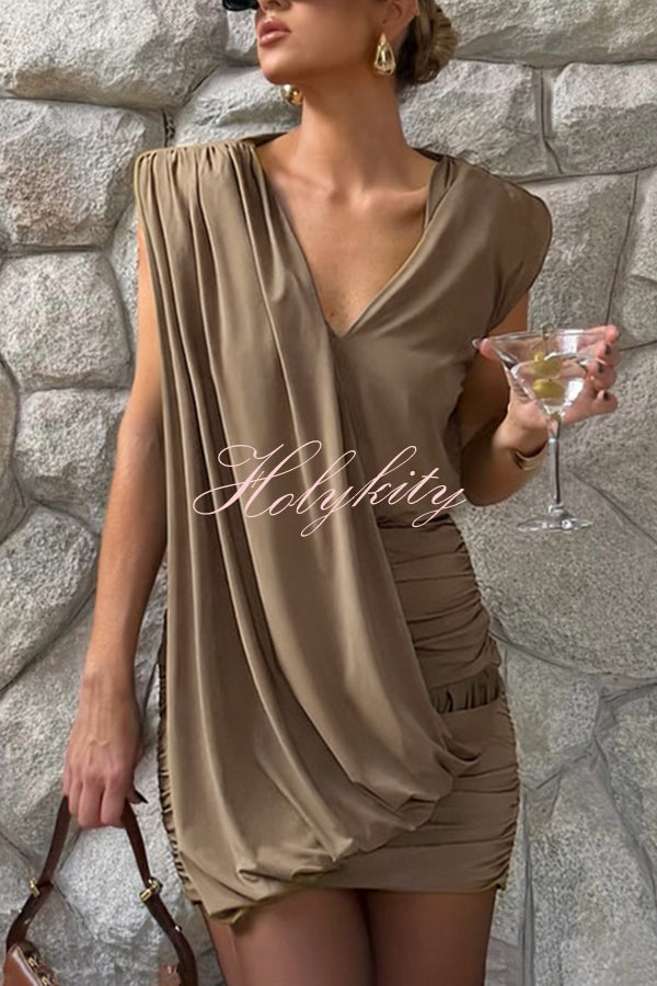 Raise A Toast Cold Shoulder Ruched Pencil Midi Dress