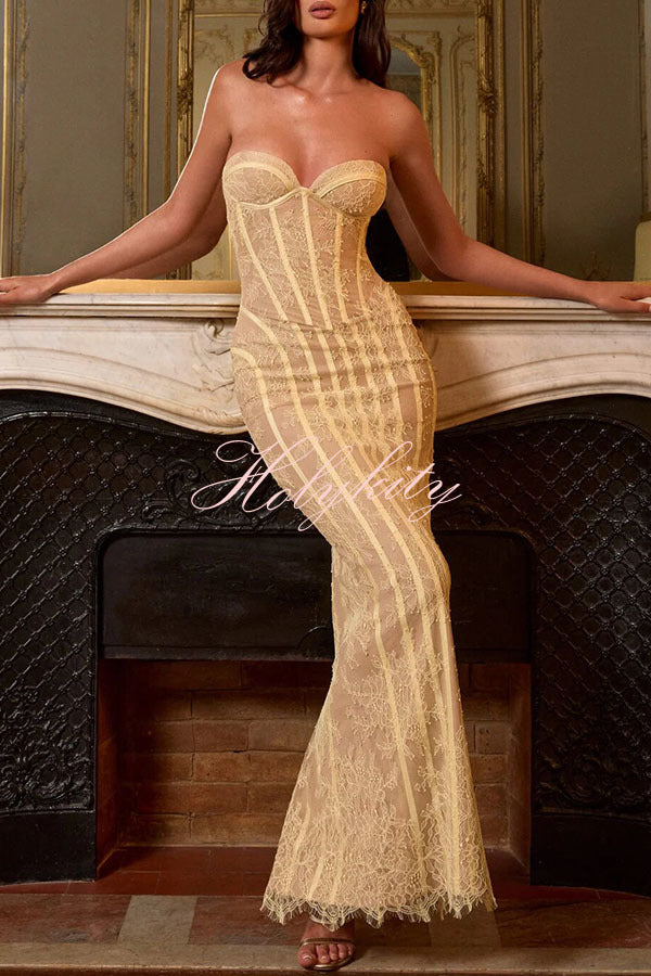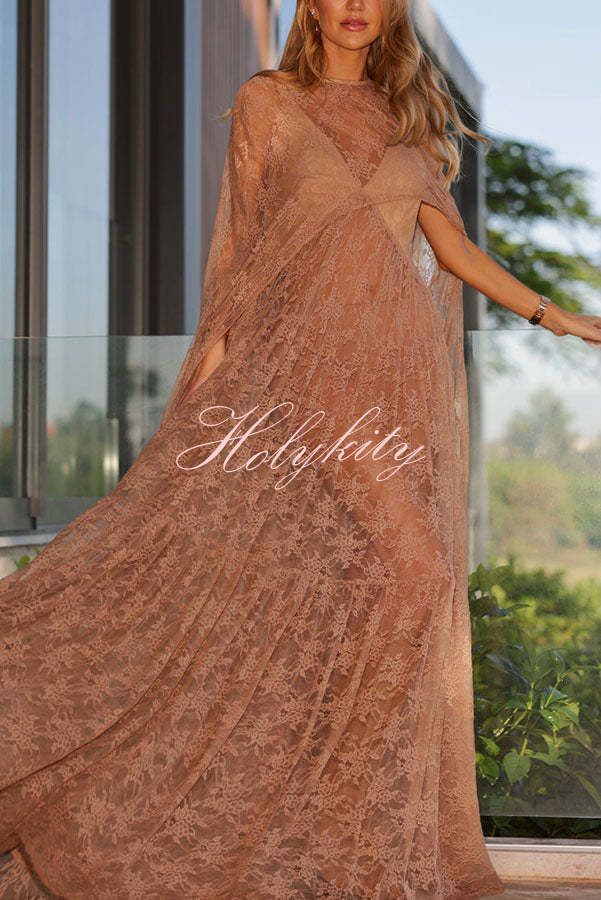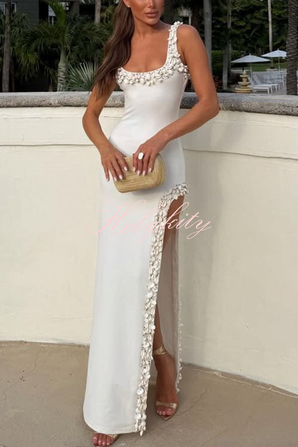 Garden Elf Lace Jacquard Textured Square Neck High Slit Maxi Dress