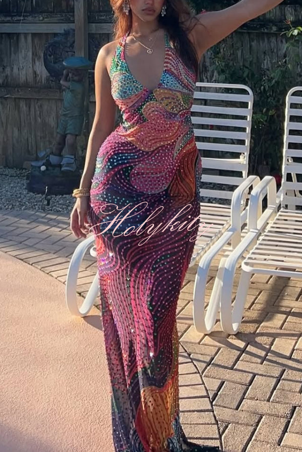 Fairy Vibes Tulle Gathered Detail Halter Maxi Dress