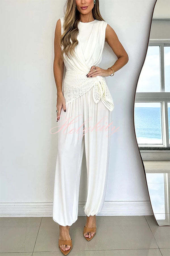 Sumui Hollow Crochet Knit Braid Detail V-shaped Hem Crop Vacation Tank
