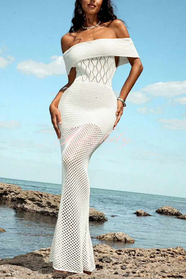 Kala Crochet Knit Braid Waist Slit Stretch Maxi Skirt