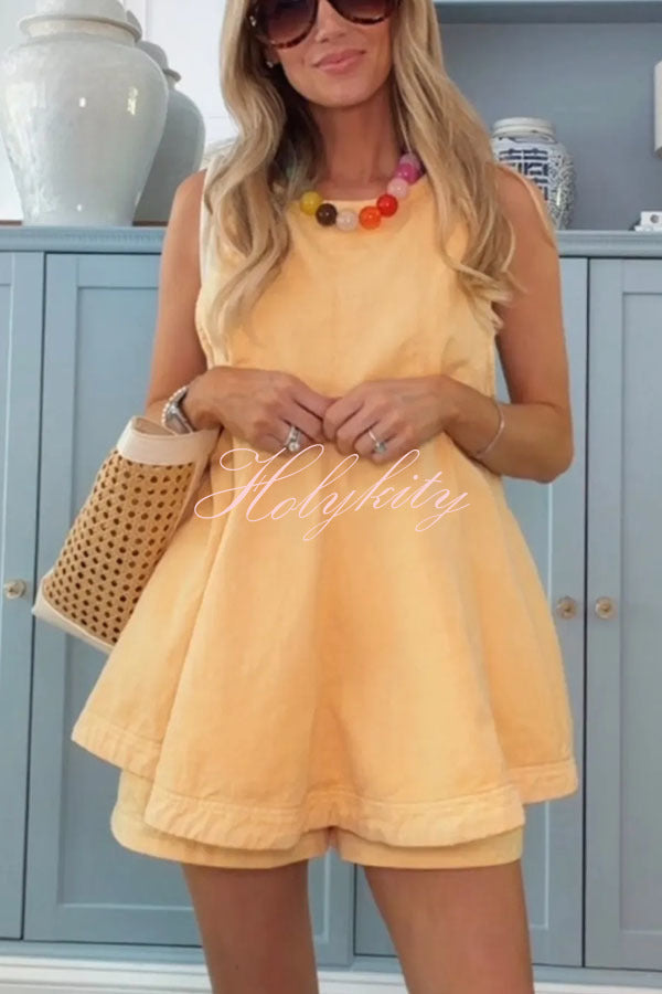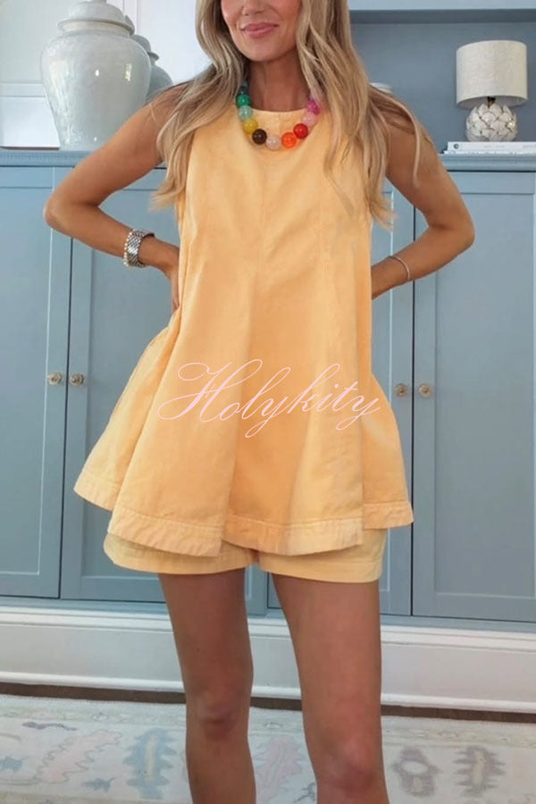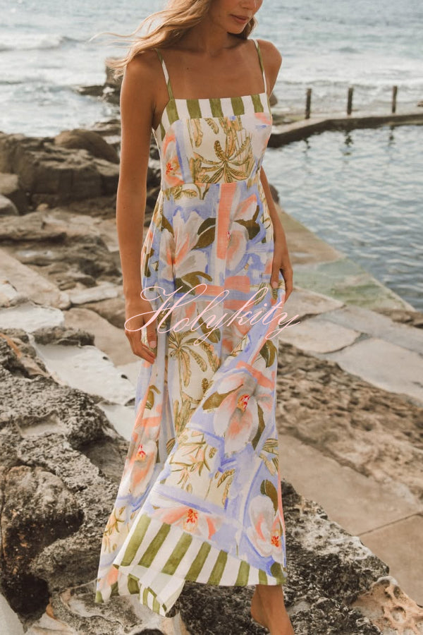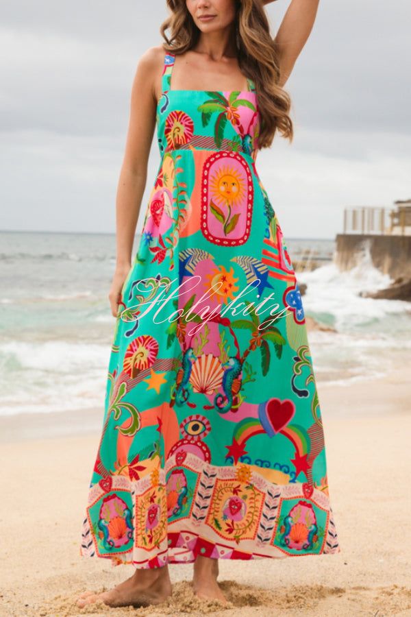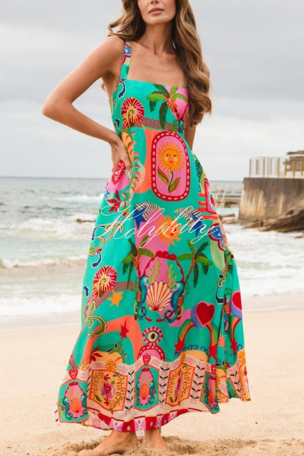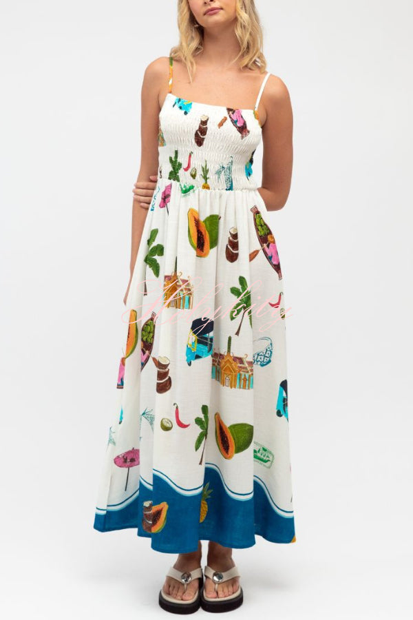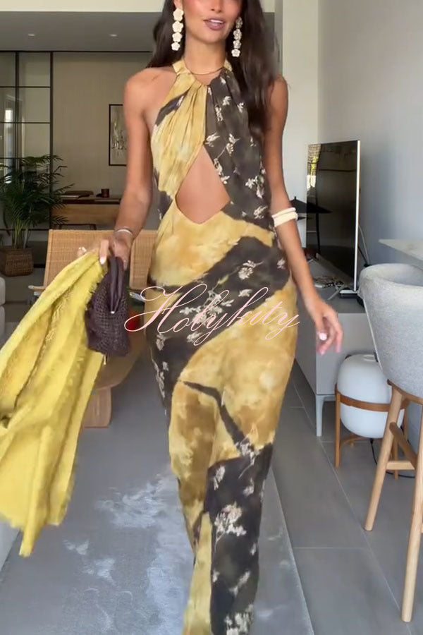 Summer Social Stain Pleated Cutout Waist Loose Midi Dress