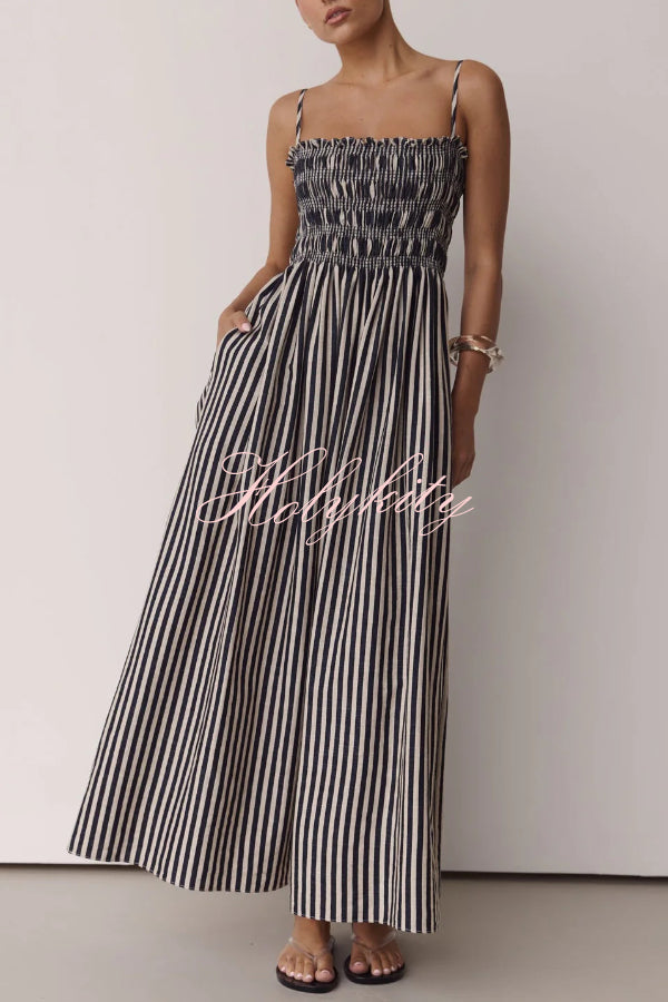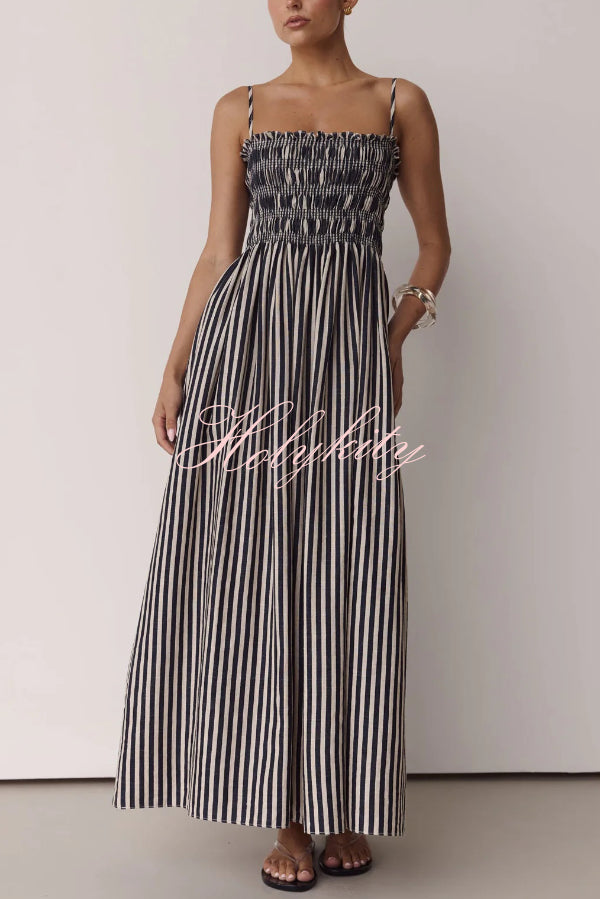Soft and Elegant Metal Hollow Design Back Smocked A-line Slip Maxi Dress