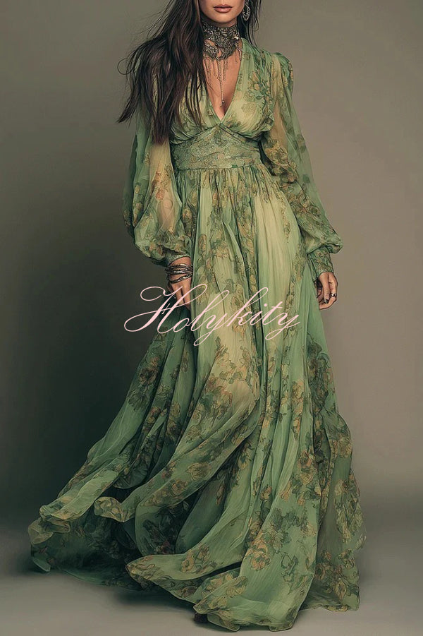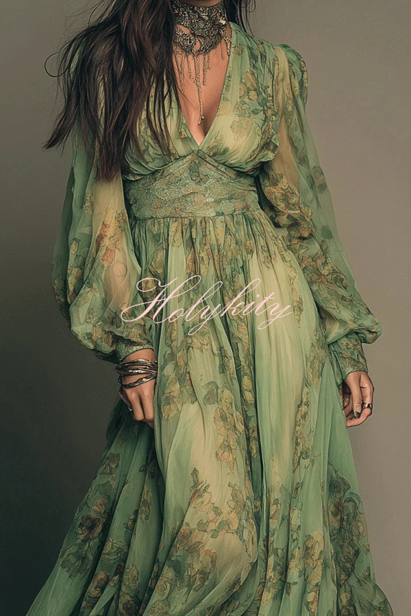 Garden Elf Lace Jacquard Textured Square Neck High Slit Maxi Dress