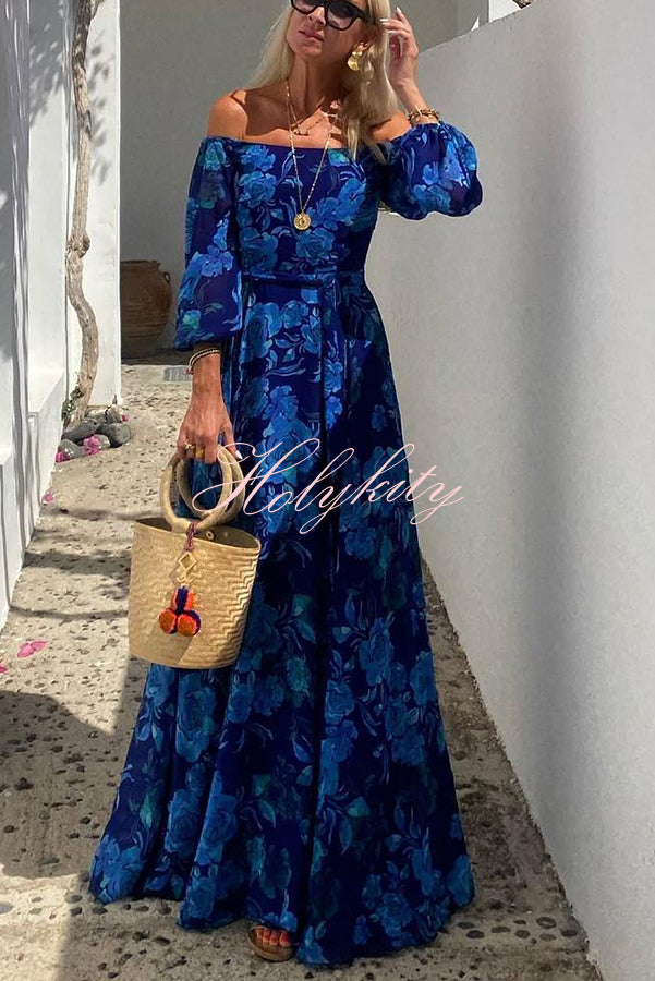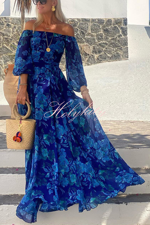 With Love Floral Off Shoulder Back Smocked Vacation Maxi Dress