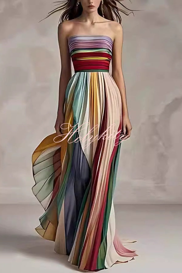 Timeless Elegance Satin Patchwork Strapless Flare Gown Maxi Dress