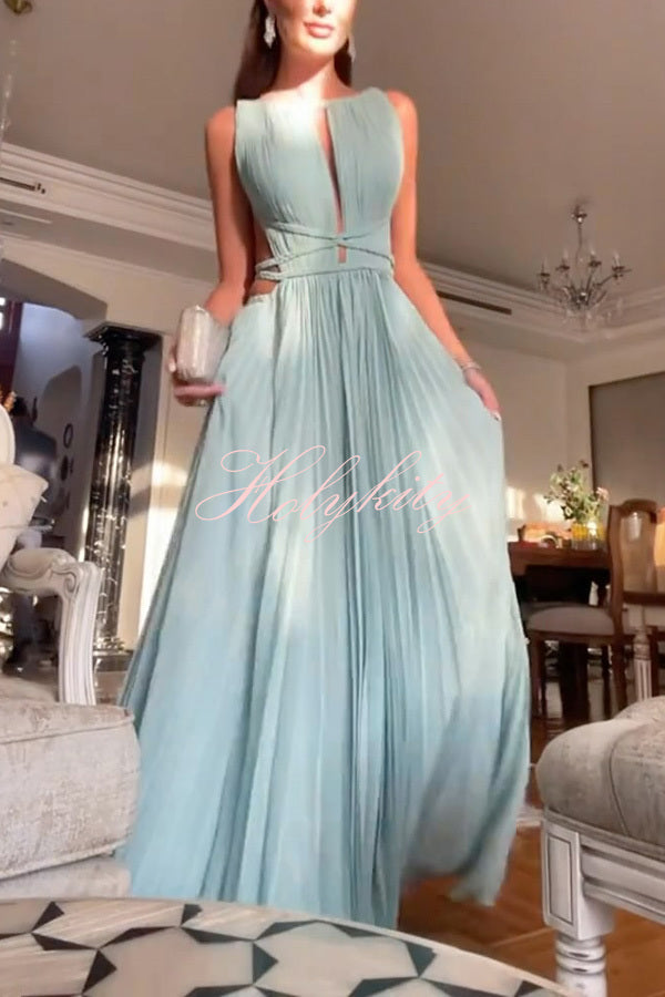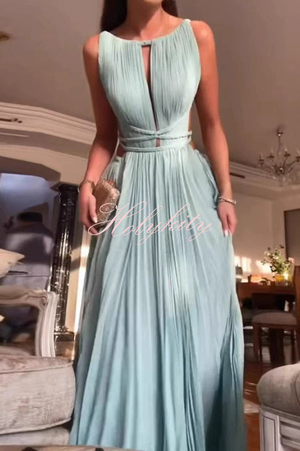 Sexy Sleeveless Open Back Cord Pleated Maxi Dress