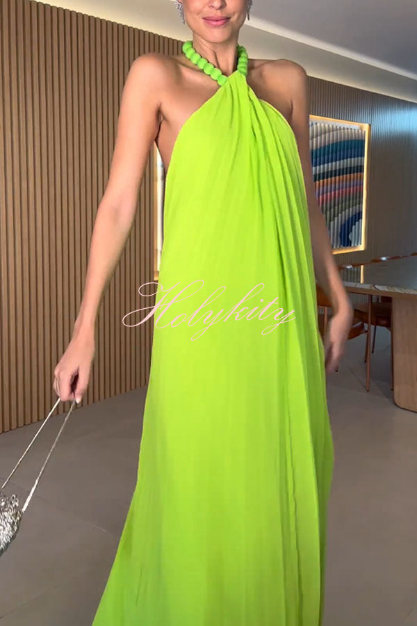 Ellise Chiffon Beads Halter Neck Backless A-line Maxi Dress