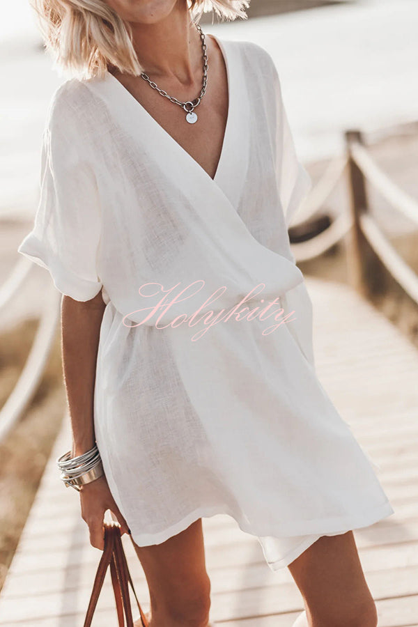 Easy Breezy Cotton Linen Blend Knotted Wrap Mini Dress