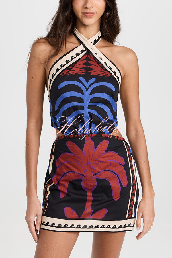 Unique Printed Sexy Halterneck Resort Beach Mini Dress