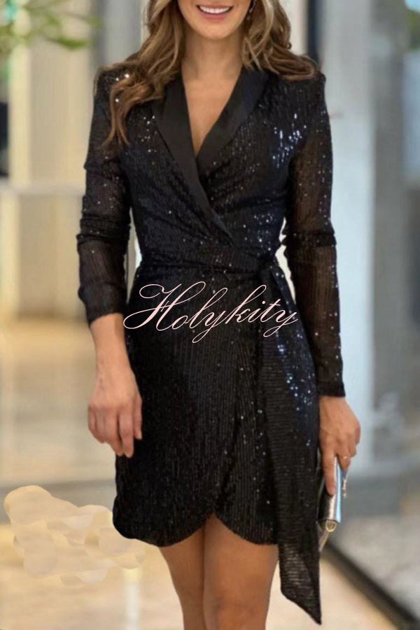 Like A Doll Sequin Long Sleeve Satin Pocketed Bubble Shape Mini Dress