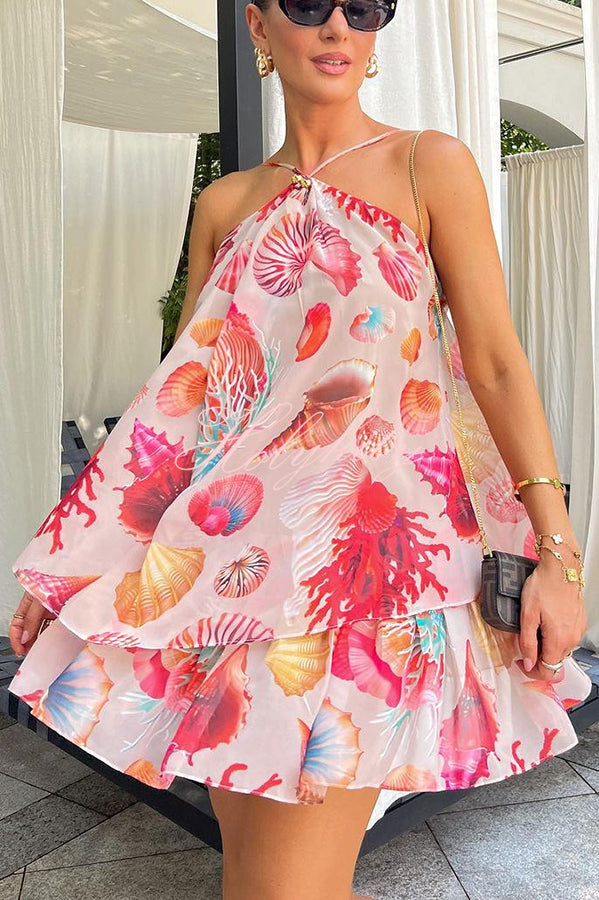 Ocean Princess Unique Print Halter Tiered A-line Mini Dress