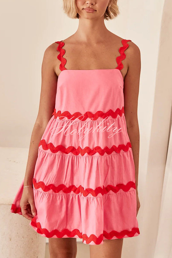 Rhea Suspender Wavy Striped Pleated Mini Dress