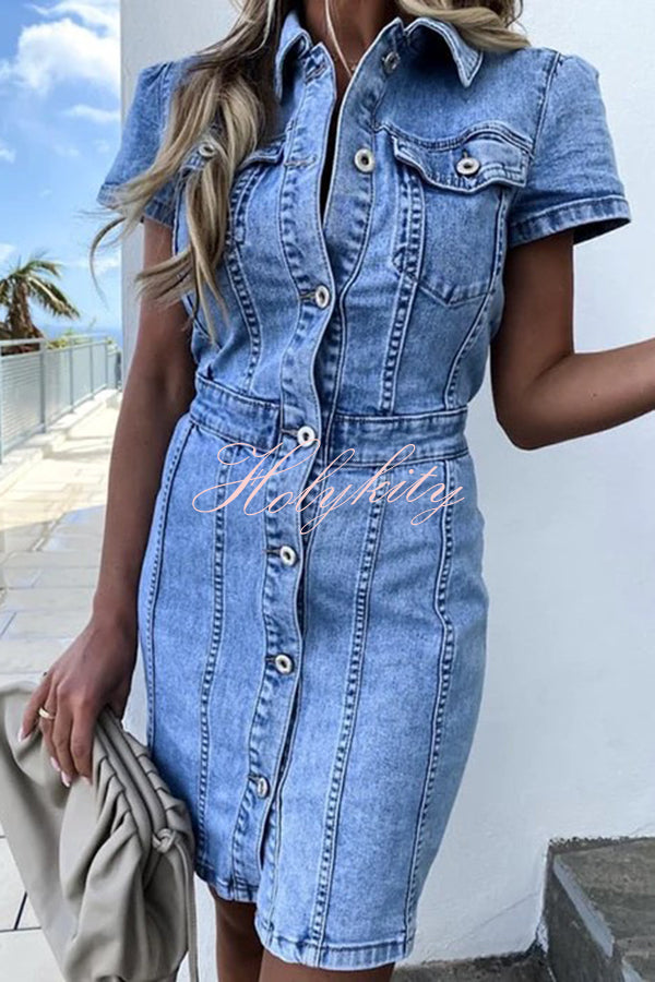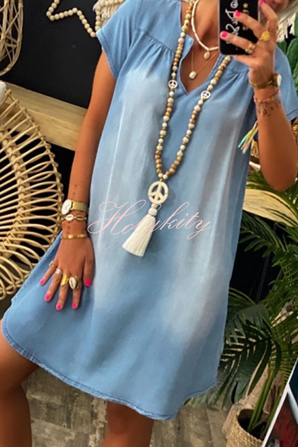 Look My Vacation Style Ethnic Print Button Loose Mini Dress