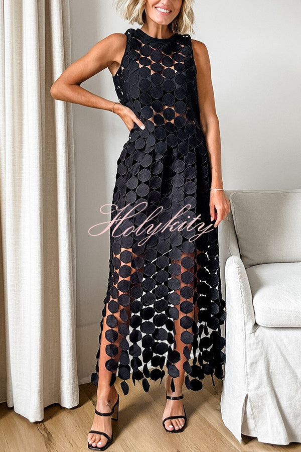 Casie See Through Circle Embroidery Round Neck Sleeveless Tank
