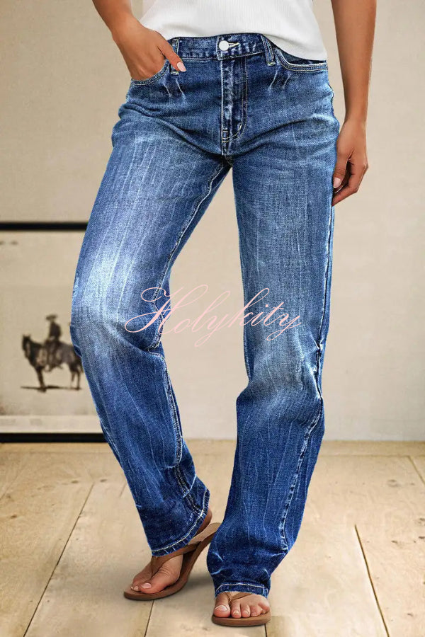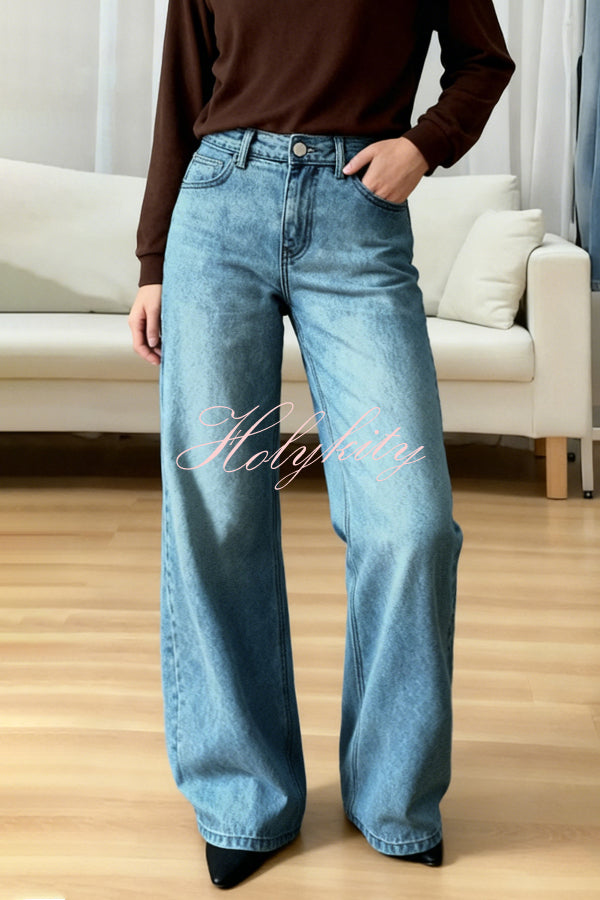Stylish Casual Loose Pockets Straight-leg Wide-leg Jeans