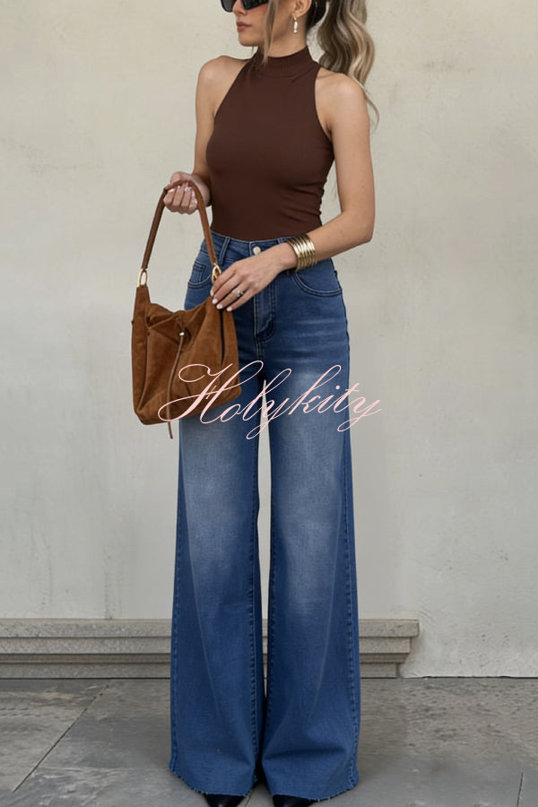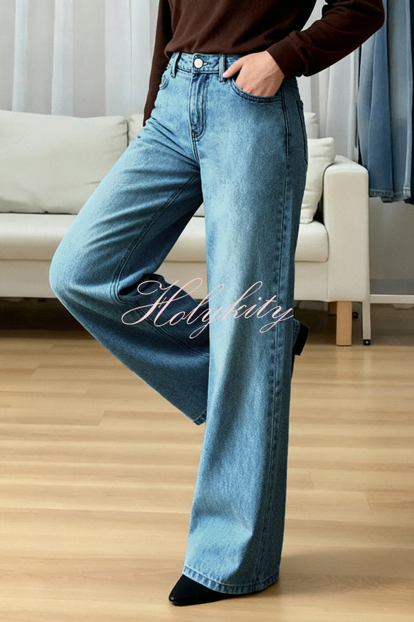 Stylish High-waisted Pocket Casual Stretch Wide-leg Jeans