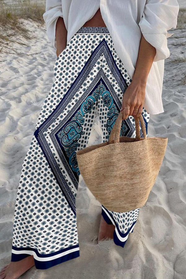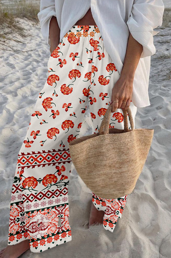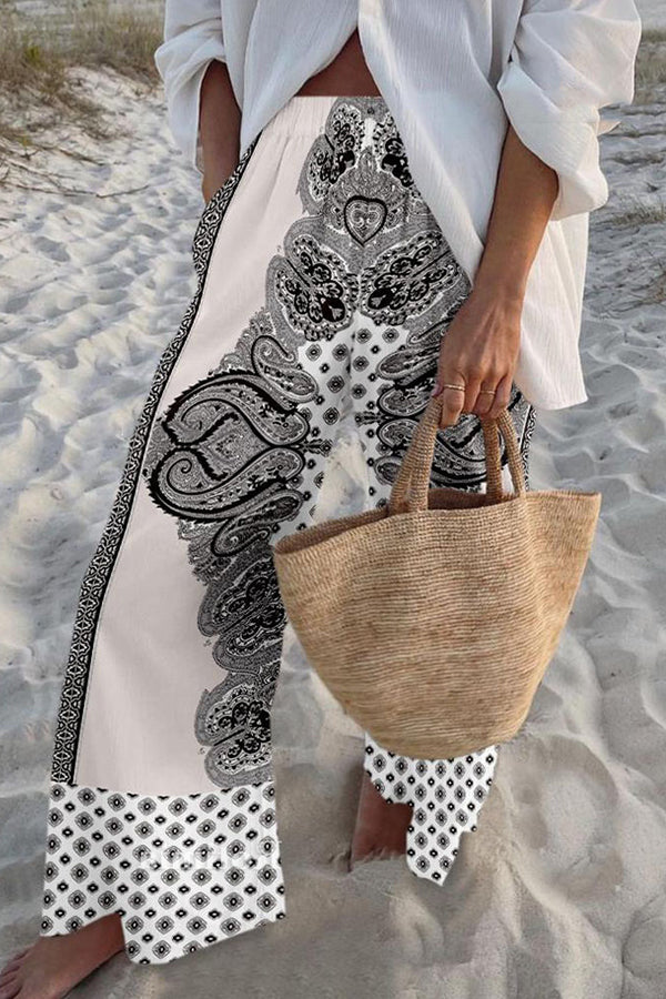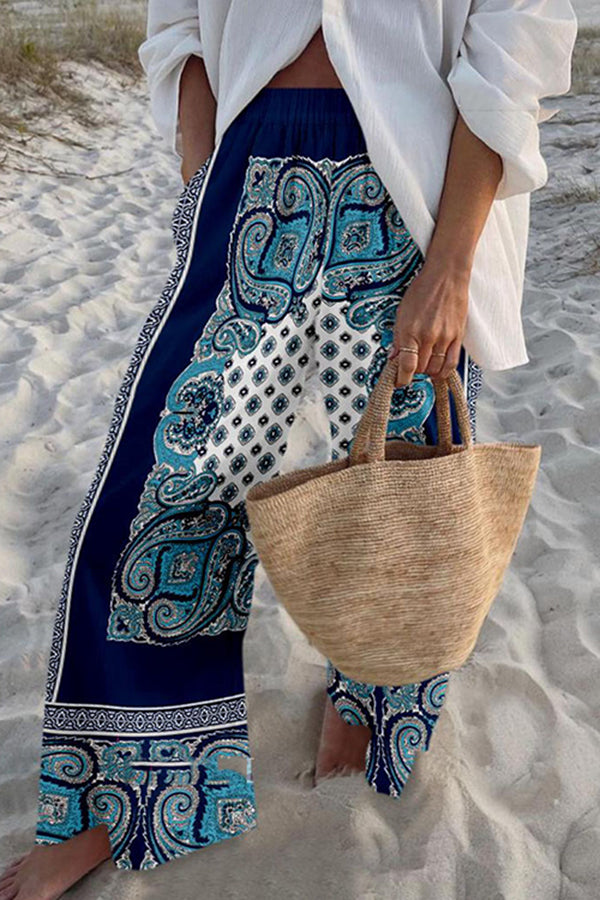 Vintage Paisley Print Elastic Waist Loose Pocket Pants