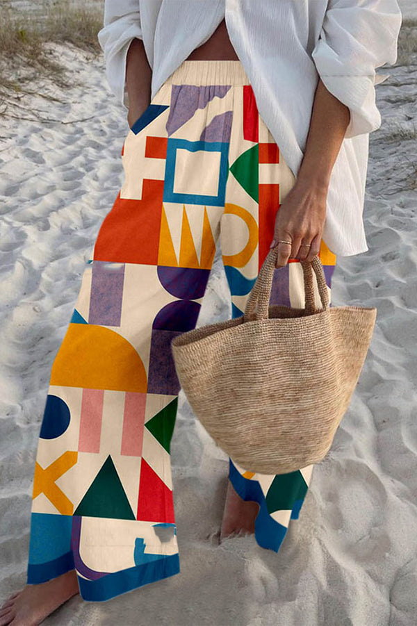 Multicolor Geometric Print Elastic Waist Loose Pocket Pants