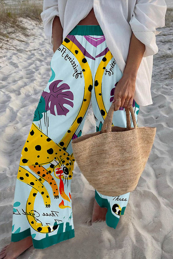 Magic Leopard Print Elastic Waist Loose Pocket Pants