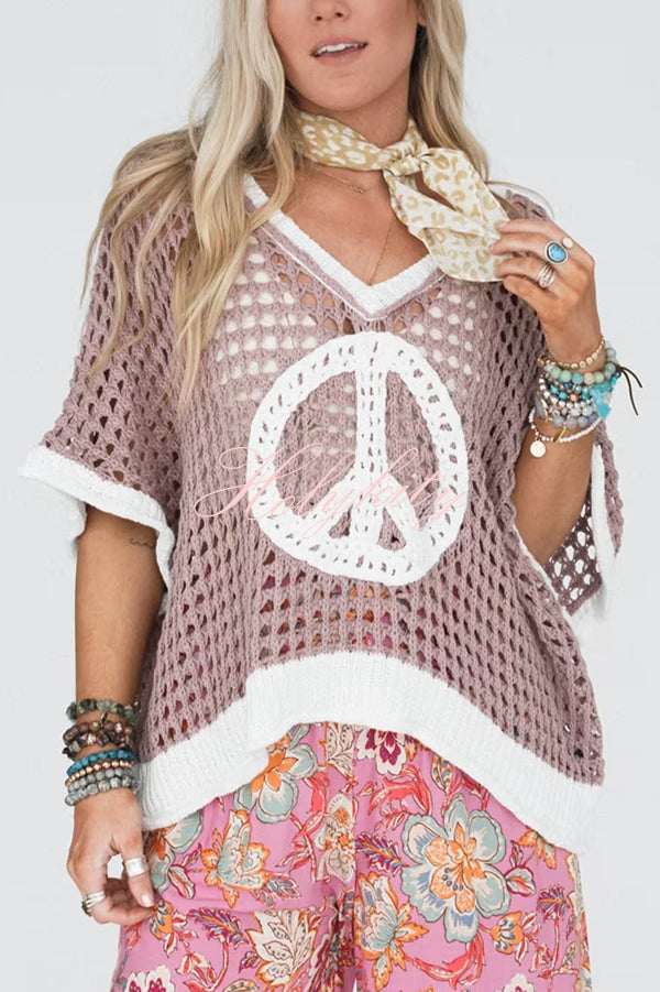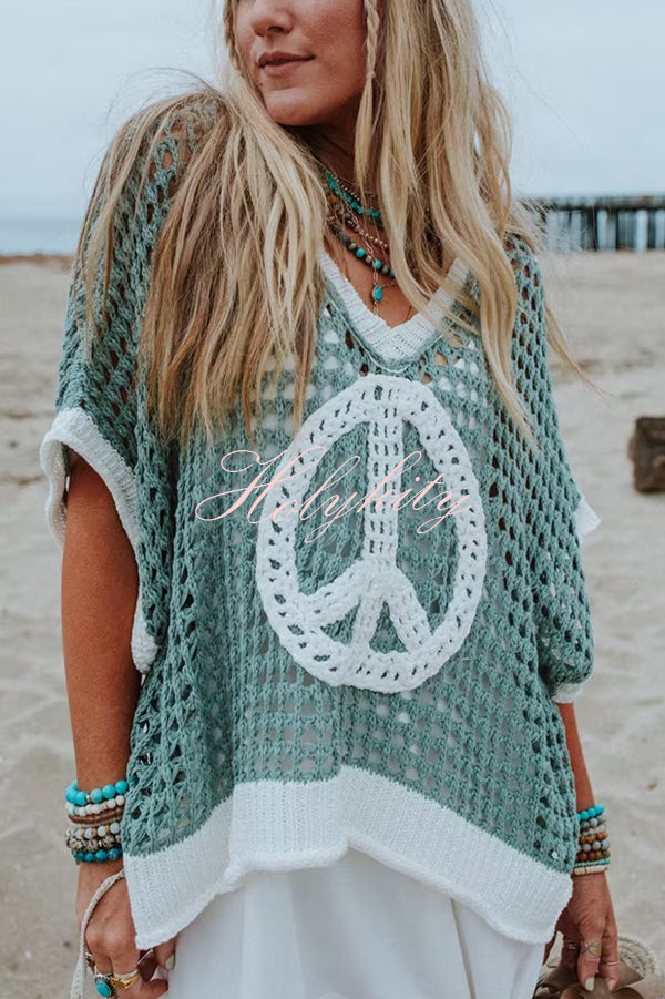 Fashionable V-neck Knitted Hollow Loose Cover-ups