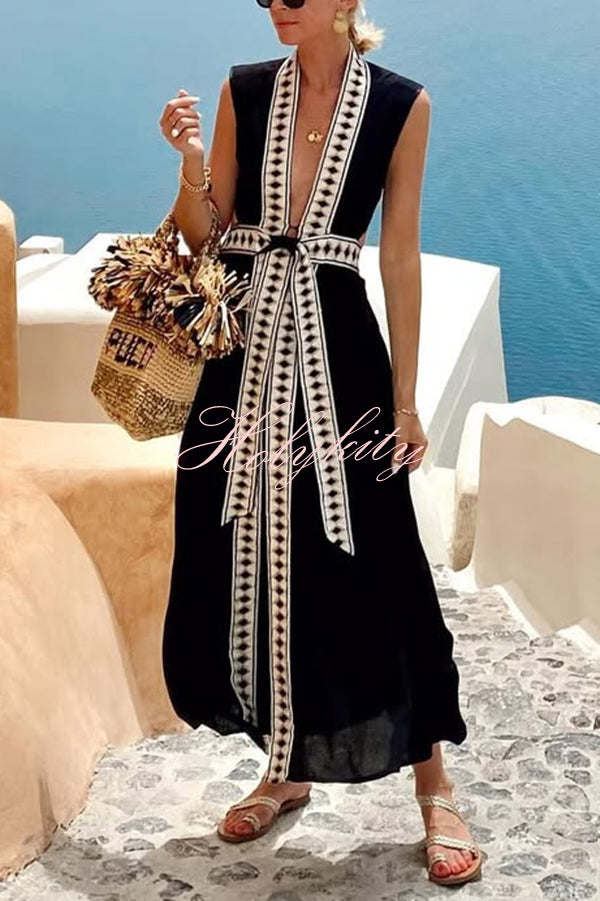 Maia Linen Blend Unique Print Belt Swimwear / Lounge Cover-up Robe