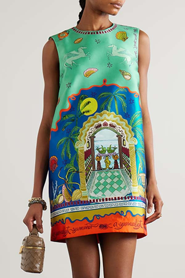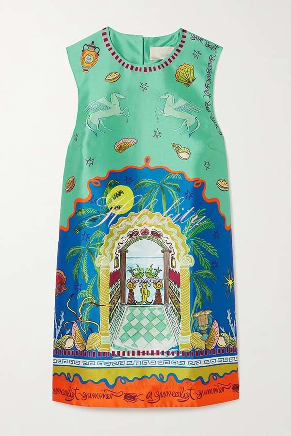 - Celebrating the natural beauty of Australia's coastline. Printed with a 'Surreal Summer' graphic, this dress is cut from lustrous satin twill in a classic straight silhouette. The mini length will be worn with platform espadrilles.Our distinctive clothing will add instant style to your wardrobe .