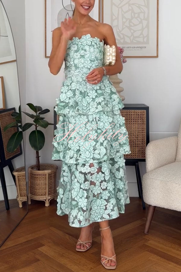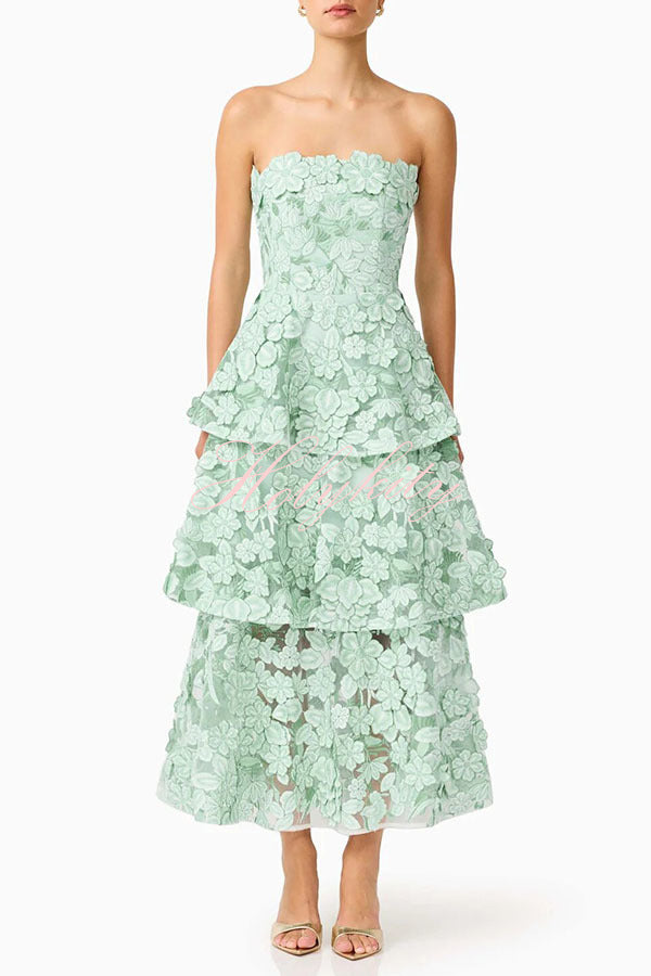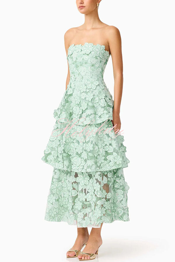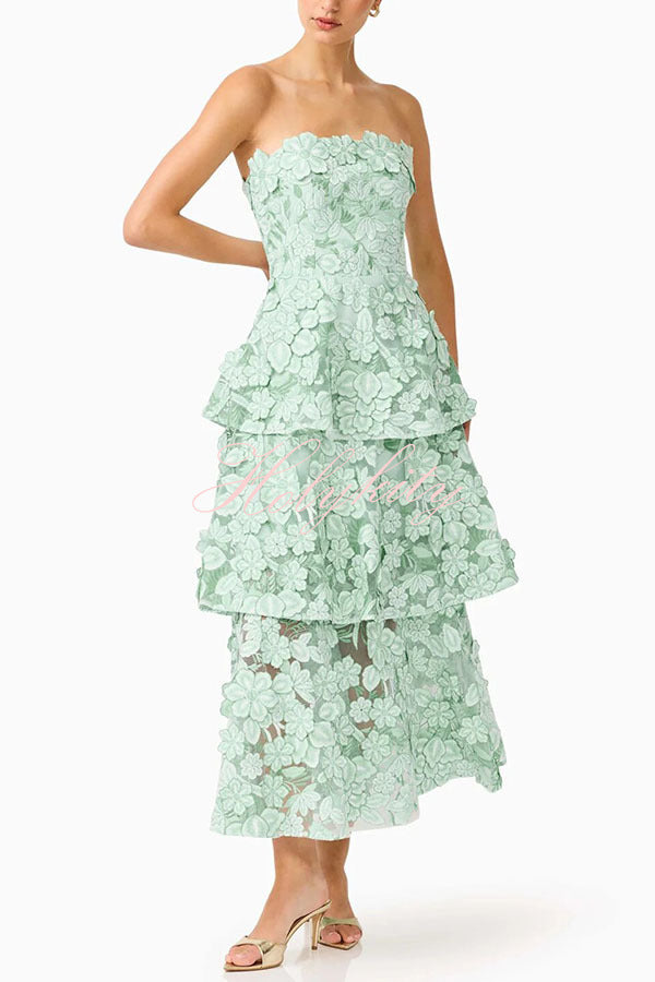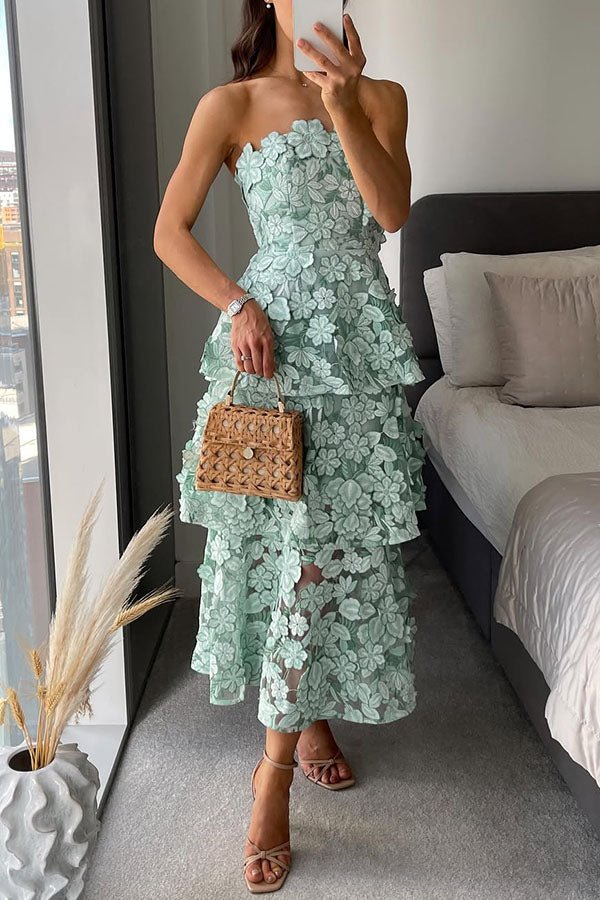 This stunning rose-layered gown is the perfect choice for weddings, cocktail parties, and elegant evening events. The fitted bodice with detachable spaghetti straps allows for versatile styling – wear it strapless for effortless elegance, or with the straps for added support. A straight neckline adorned with delicate 3D floral patterns adds a touch of soft romance to the overall design. Our distinctive clothing will add instant style to your wardrobe.