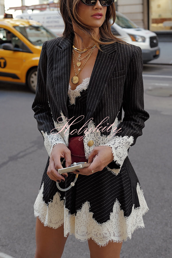 - Lace trim V-neck