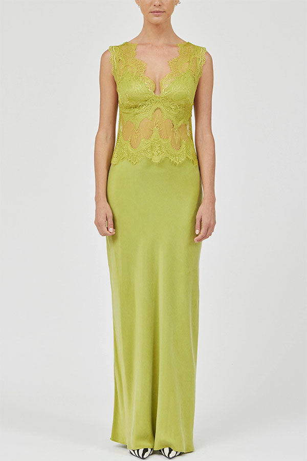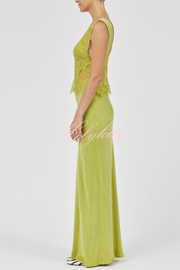 - This floor-length lace gown combines structure and flow, offering a modern interpretation of evening wear. Sheer lace details add depth and dimension to the corset, contrasting sharply with the clean lines and flowing skirt for an effortlessly elegant look. Made from premium washed cupro, the fabric boasts excellent drape, contributing to a relaxed and comfortable feel to the overall design.Our distinctive clothing will add instant style to your wardrobe.