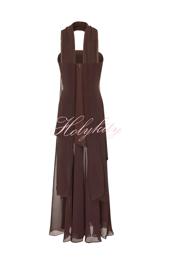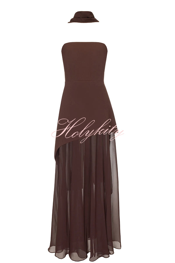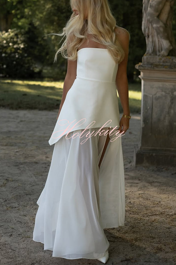 - This elegant strapless dress features a structured top paired with a flowing chiffon layer. The long, sheer fabric adds movement, while the side slit gives the dress a dynamic feel. Designed for upscale occasions and special moments.Our distinctive clothing will add instant style to your wardrobe.