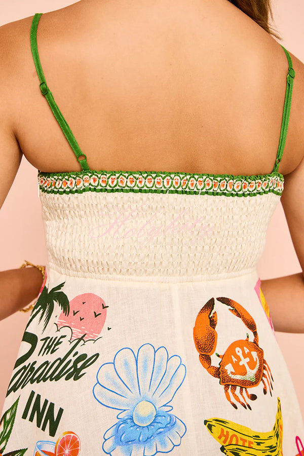 - Crafted from a lightweight linen fabrication, this midi silhouette features in seam pockets, adjustable straps and a shirred panel at the back bodice to create the perfect fit. Perfect for a weekend getaway or summer days, this dress is a must-have in any wardrobe.