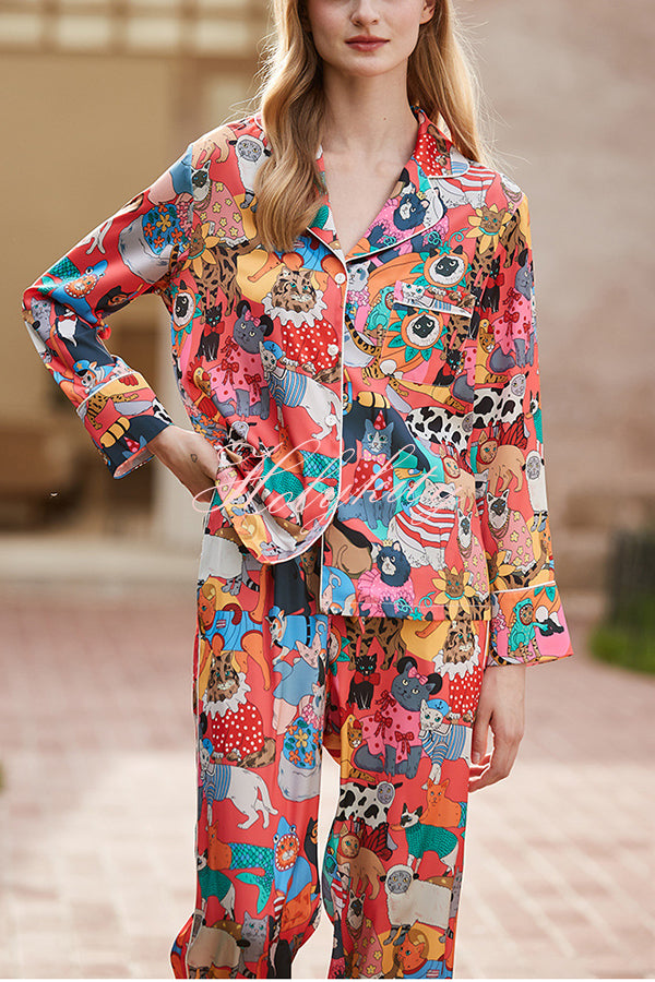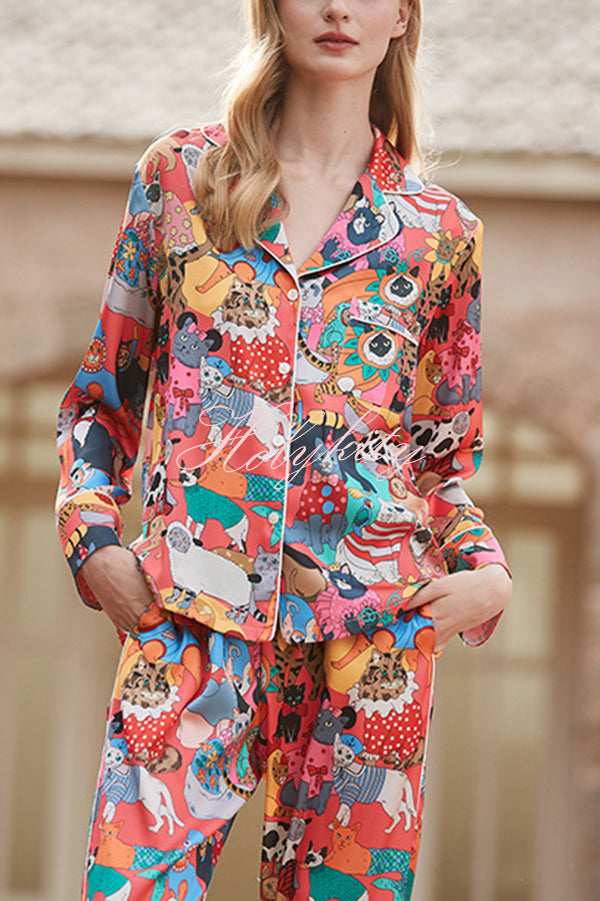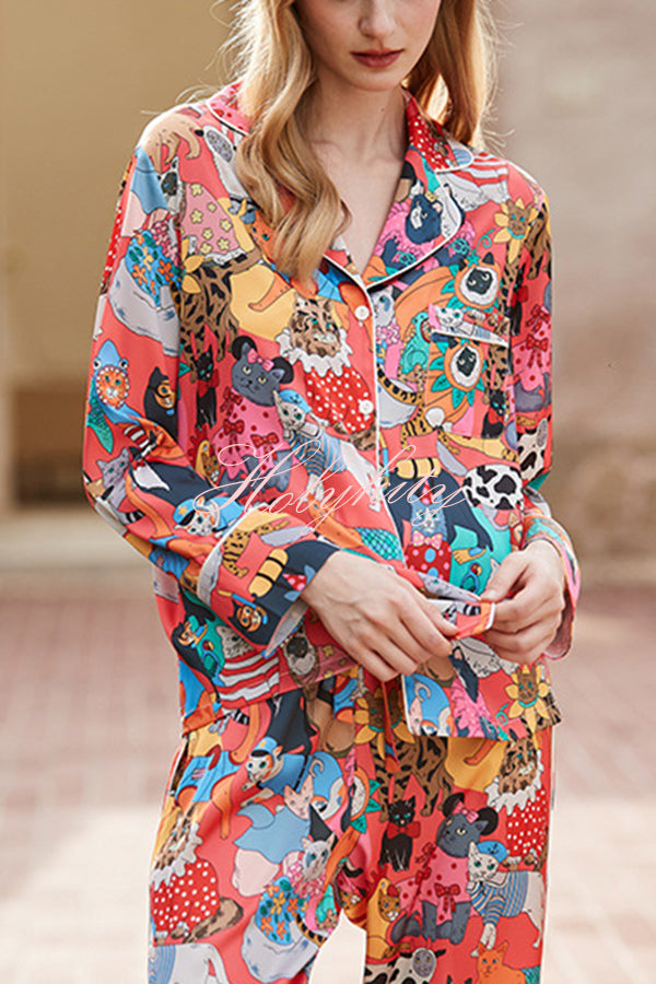 Banquet Cat Print Home Long Sleeved Two-piece Set