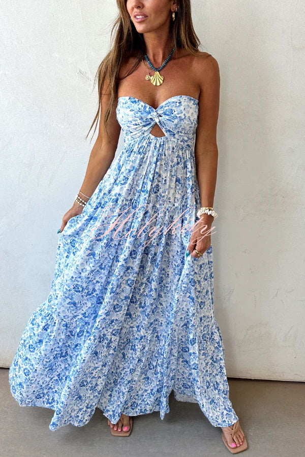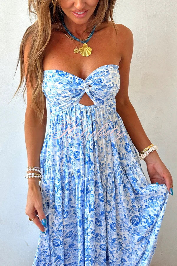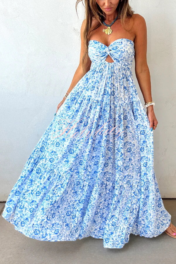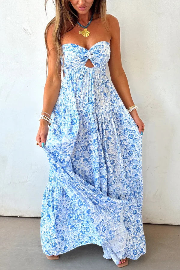 Floral Print Sleeveless Off-shoulder Cutout Resort Style Maxi Dress