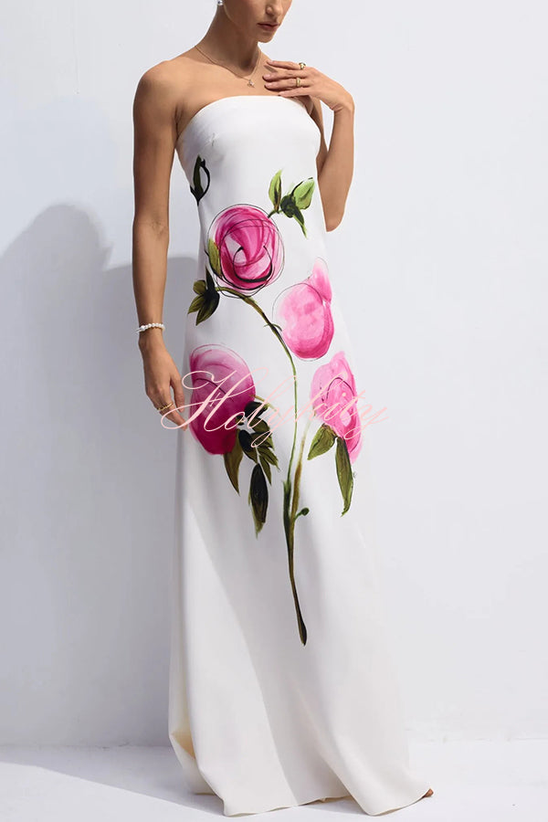 - Cleverly blending an off-the-shoulder neckline with a hand-painted rose print on lustrous satin fabric, this piece creates a timelessly classic silhouette. With its flowing full-length hem and relaxed, comfortable fit, it serves as an ideal choice for a guest attending a garden wedding. Whether for a destination wedding, an outdoor event, or simply enjoying a leisurely evening at a resort, this dress offers a superb option that is both refined and distinctly modern.Our distinctive clothing will add instant style to your wardrobe.
