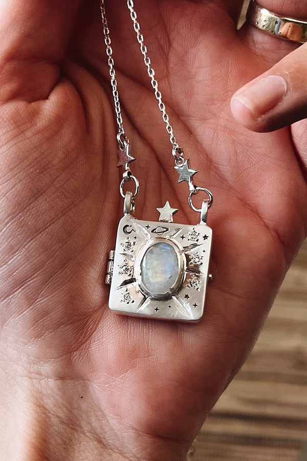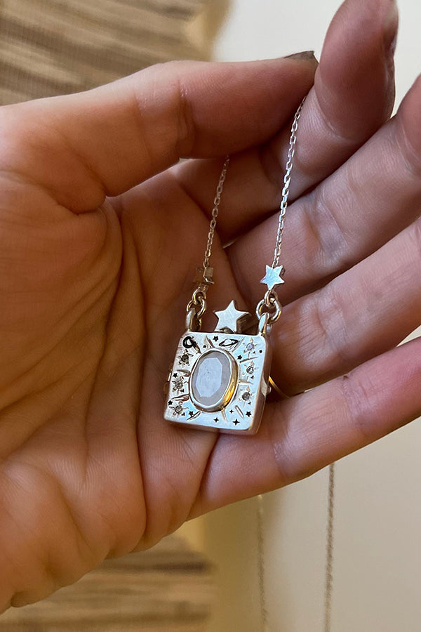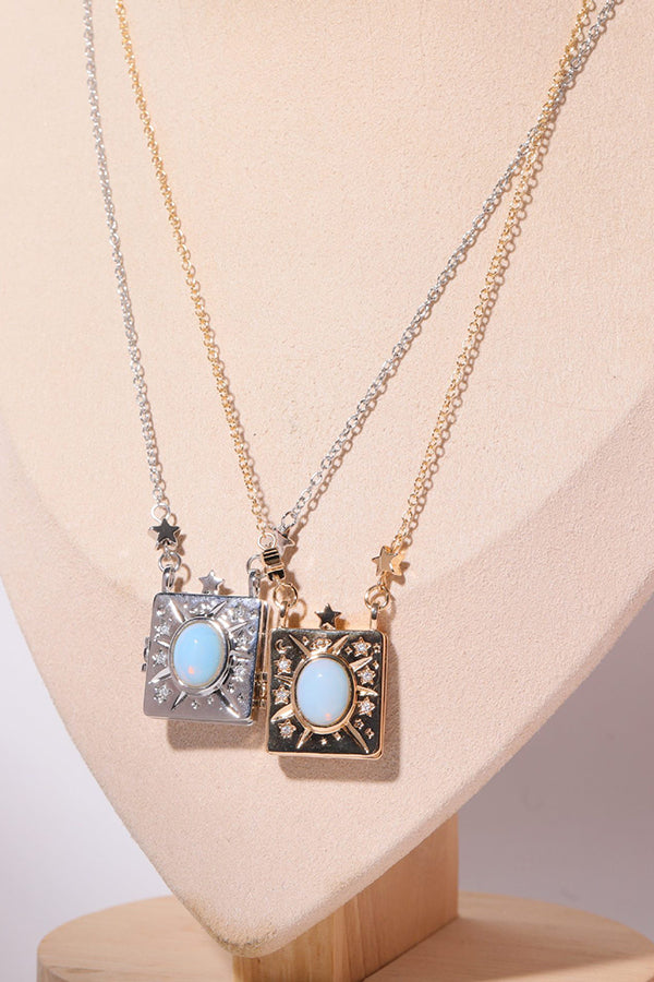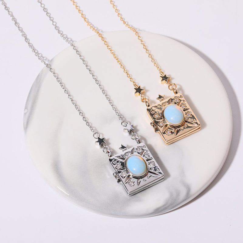 Stay stylish with this openable gemstone necklace! This beautiful necklace is made of sparkling gemstones and copper. This stunningly beautiful necklace will bring a fresh and sweet look to your summer wardrobe!