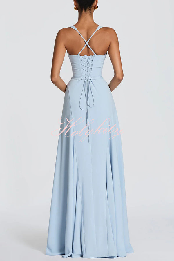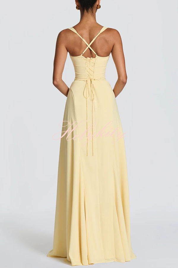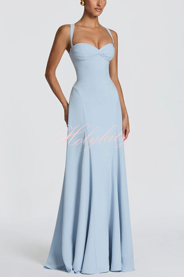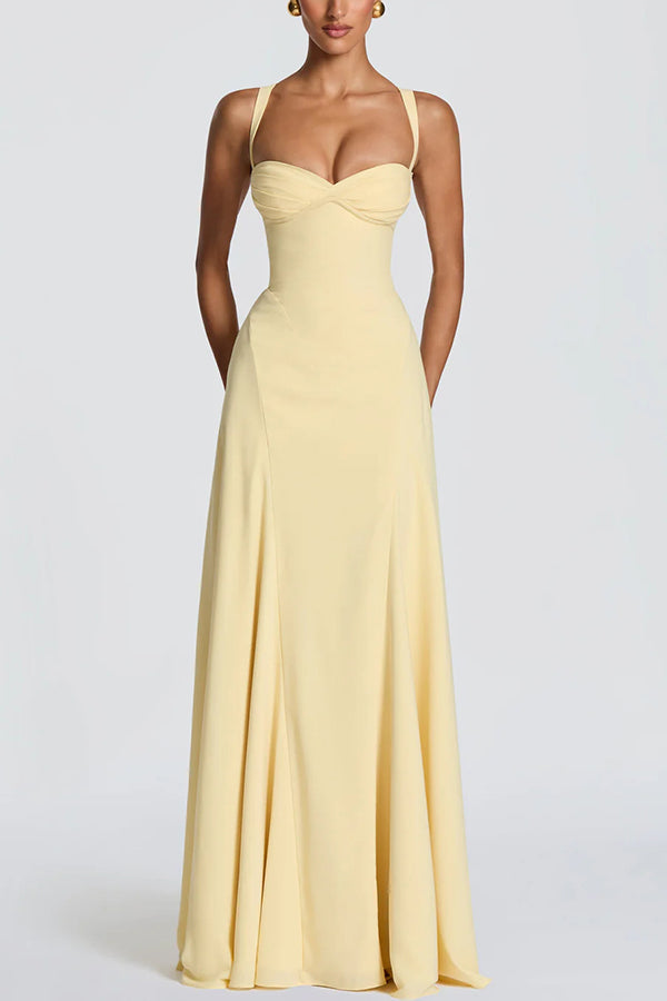 This Irie maxi dress features a sweetheart neckline, underwire cups, a fitted bustier, and a flared skirt with pleats. Tapered straps and a tie-back provide adjustable support for a slender silhouette. Crafted from flowing chiffon, it exudes elegance.Our distinctive clothing will add instant style to your wardrobe. -