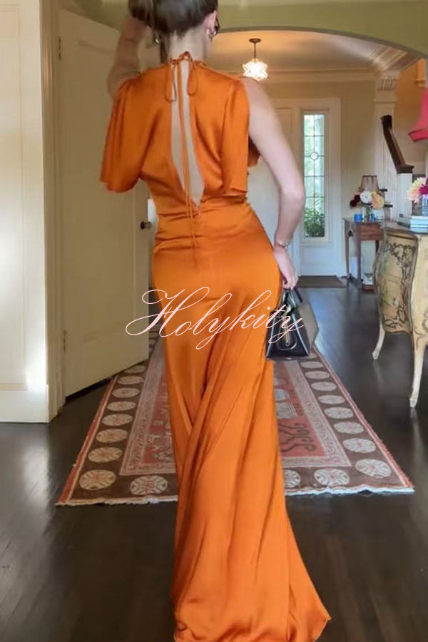 Isabella's gown, with its simple round neck and V-shaped open back, is an elegant and unique evening gown. The fitted cut accentuates the upper body curves, while the skirt cascades to the floor, adorned with richly textured pleats at the front waist.Our distinctive clothing will add instant style to your wardrobe. -