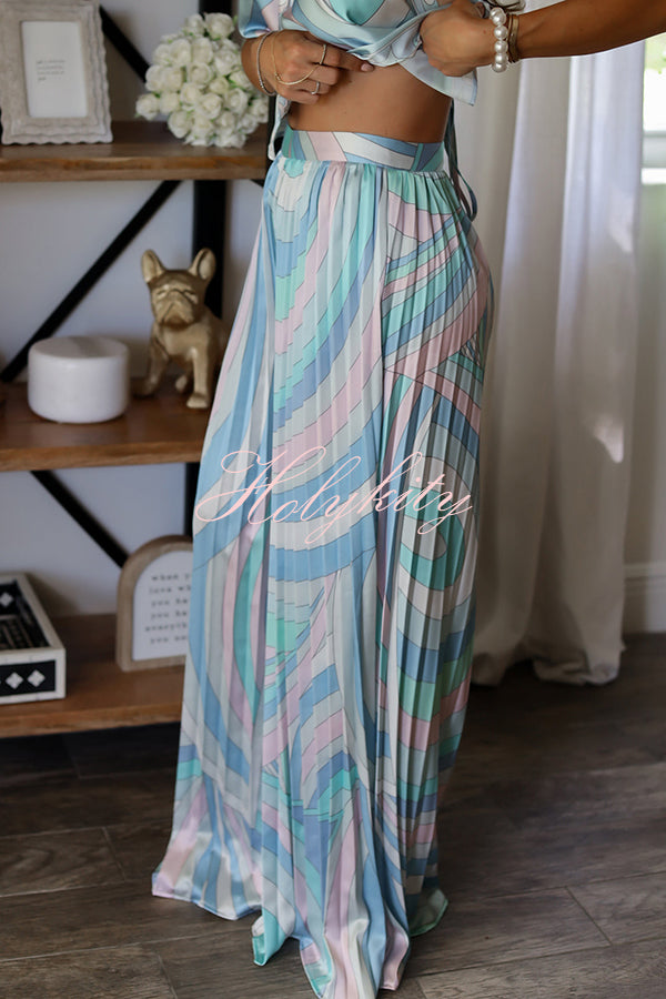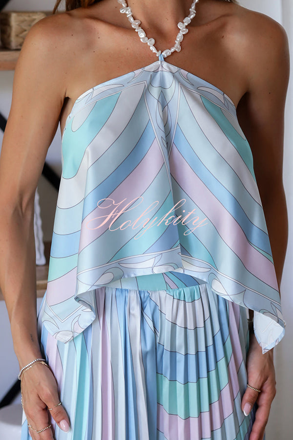If cotton candy skies were a set, it would be this one. Soft, airy, and instantly captivating, this is the kind of piece you fall in love with the second you see it… and honestly, you don’t come across prints like this often.The swirl of blues, seafoam, and lilac feels like a sunset by the water, while the delicate pearl accents along the halter add that extra touch that makes it feel so special. Every detail is feminine, eye-catching, and just different in the best way. It’s one of those sets that doesn’t need much… it already makes the statement.Our distinctive clothing will add instant style to your wardrobe. -