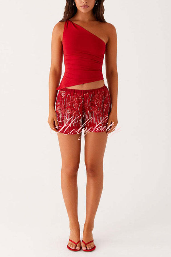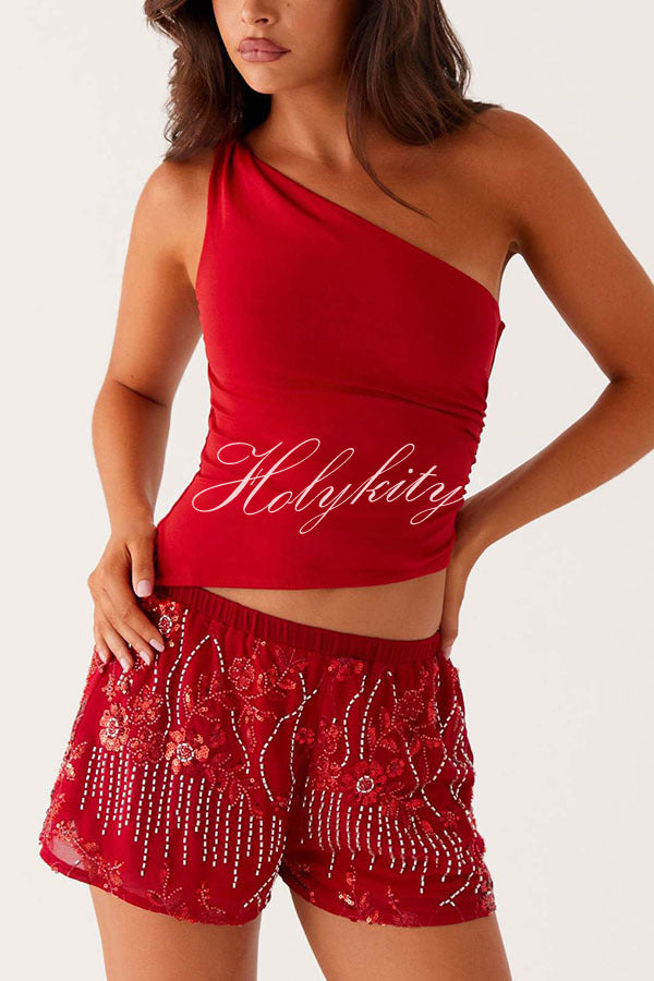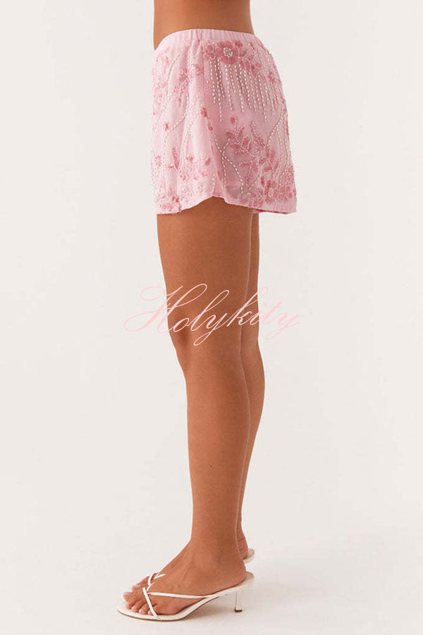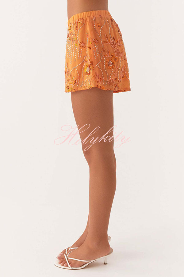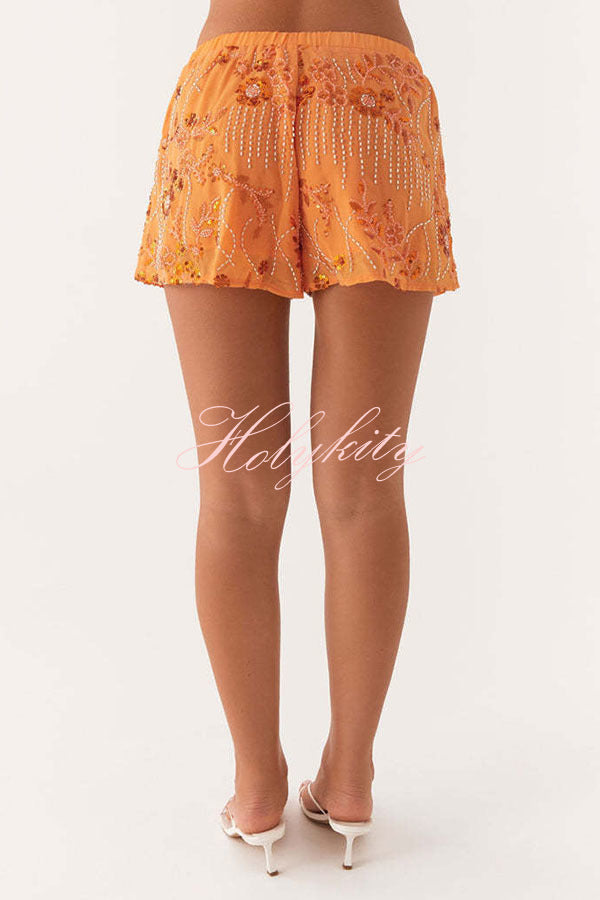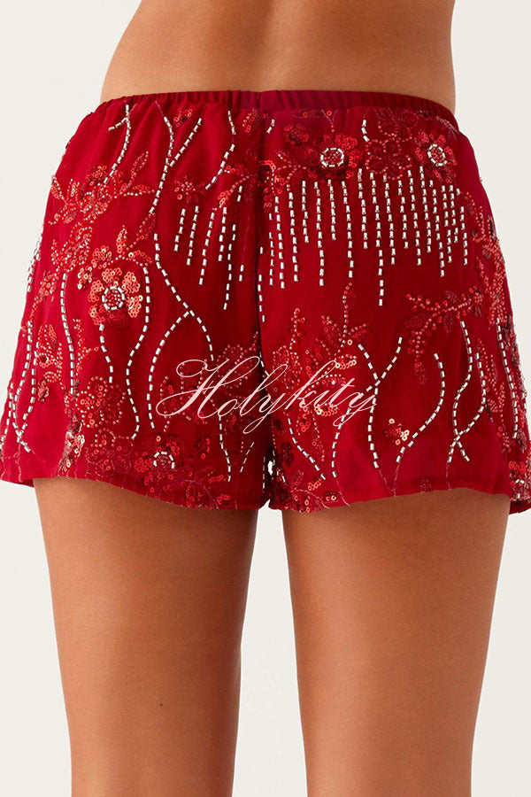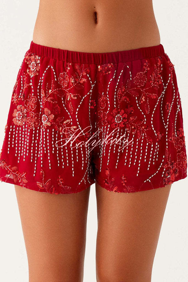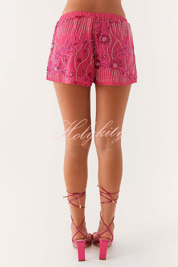 - Sequin mini shorts are a show-stopping piece designed to turn heads. Featuring a low-rise fit and crafted from beaded material with strategically placed beading, these shorts create a dazzling effect that catches the light beautifully.Our distinctive clothing will add instant style to your wardrobe.