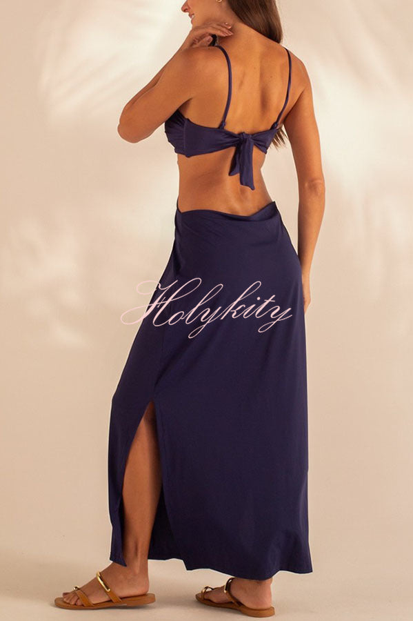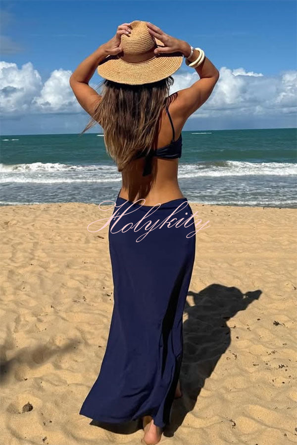- A cover-up can be transformed into a dress by connecting it to a top.