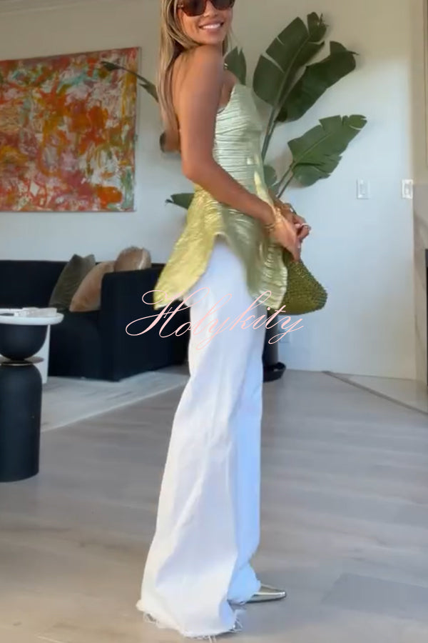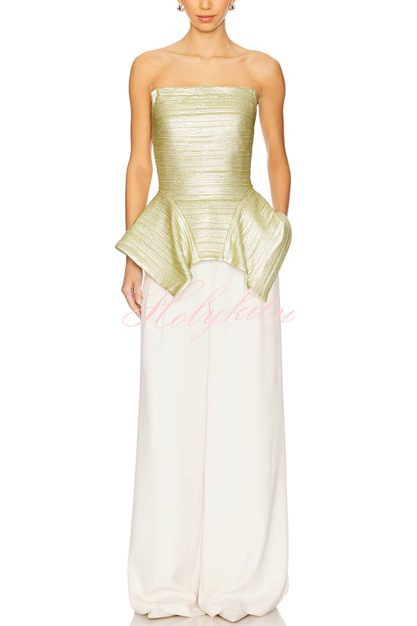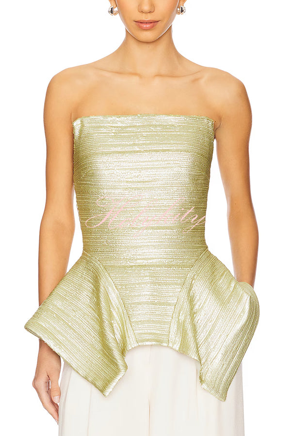 - Its strapless design offers exceptional styling versatility—perfect for highlighting eye-catching statement jewelry or showcasing the alluring elegance of bare shoulders. The highly structured, corset-style silhouette artfully cinches the waist, while unique saddle-hem detailing infuses the piece with a touch of architectural flair. Crafted from shimmering fabric that sparkles and gleams with every shift of light, this piece ensures you remain the undisputed center of attention.Our distinctive clothing will add instant style to your wardrobe.