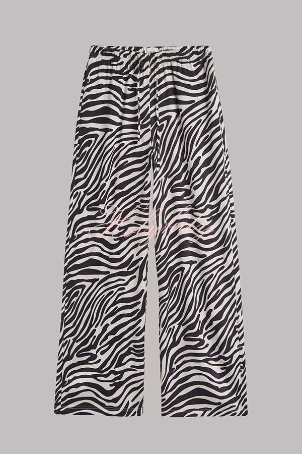 - Stand out in style with these bold zebra print flowy pants. Designed with an elastic, adjustable waistband for a perfect fit.
